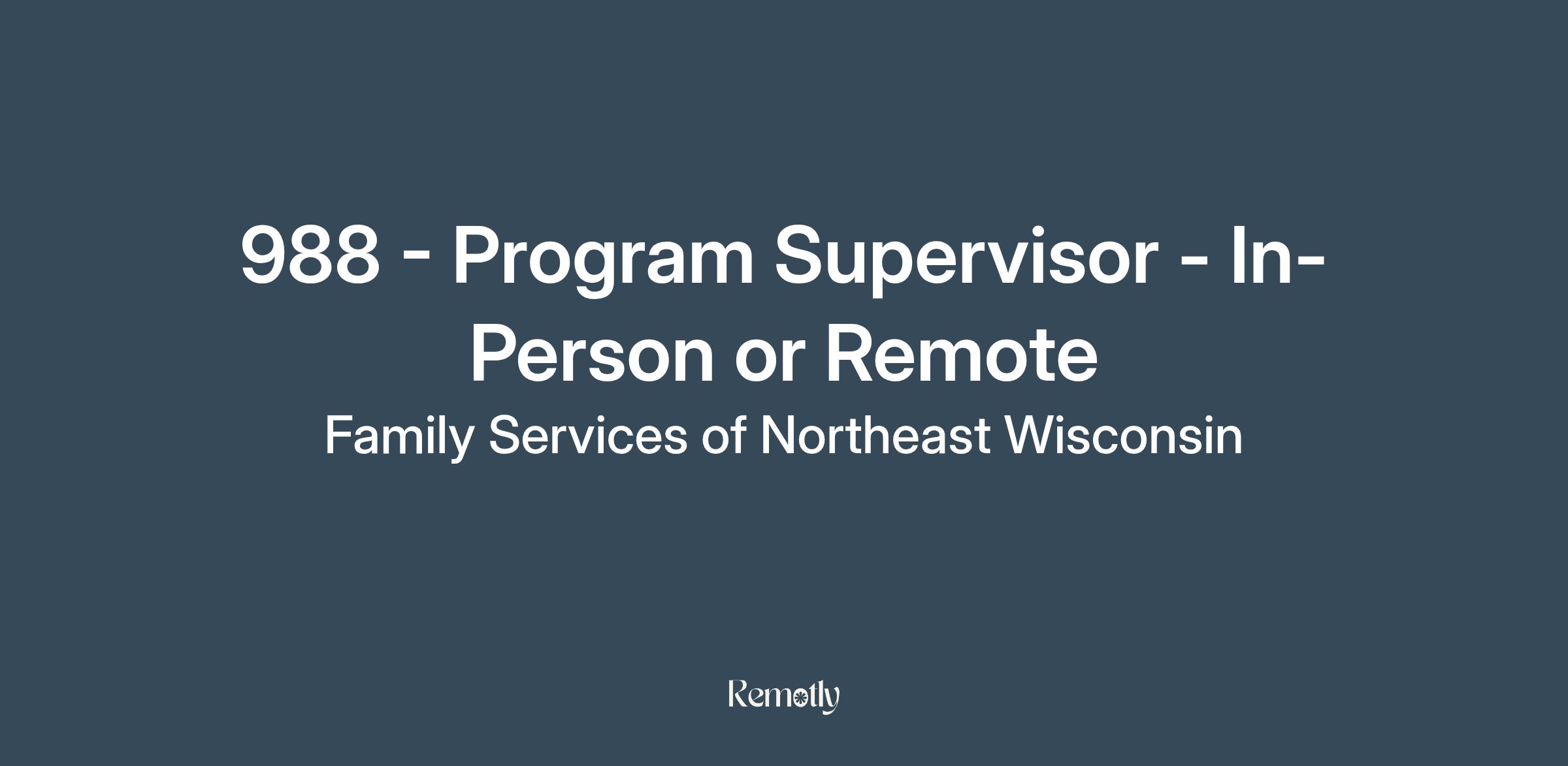 We are seeking a Program Supervisor to join our 988 Wisconsin Lifeline team. This full-time position is responsible for the coordination and general functioning of the Lifeline Center. The Program Supervisor is also responsible for assigned team members and may participate in other related activities connected to the administration of the program, such as speaking engagements, conference presentations, and membership on committees. This position is eligible for hybrid/remote work, with an onsite requirement for onboarding and meetings as necessary.