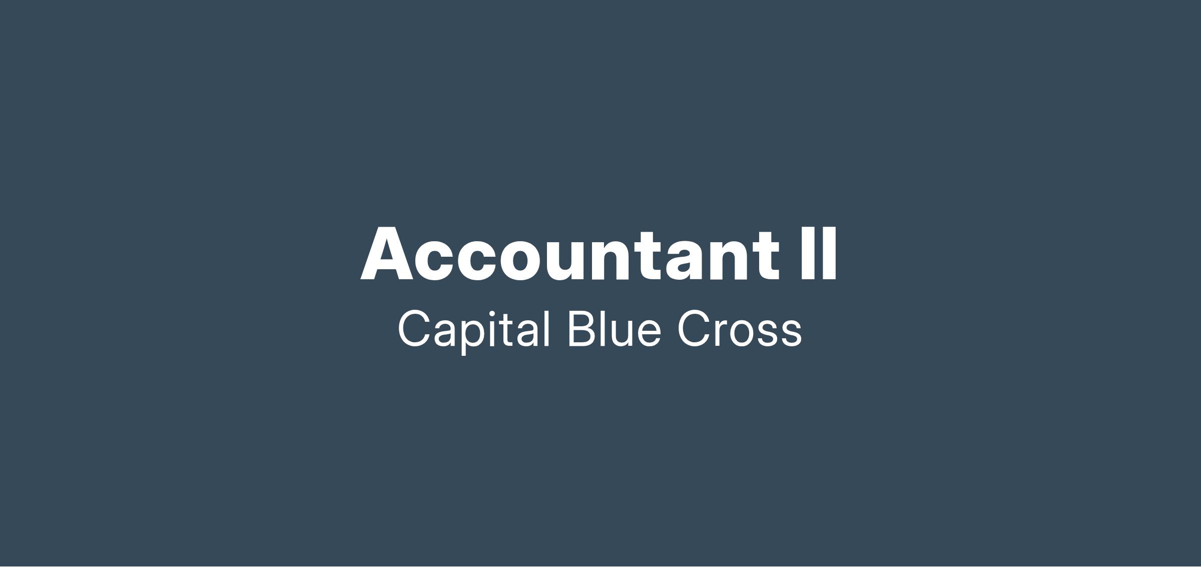 The Accountant II prepares, analyzes, and reviews the general ledger, account reconciliations and financial statements for Capital Blue Cross and its affiliates, subject to GAAP and STAT rules.