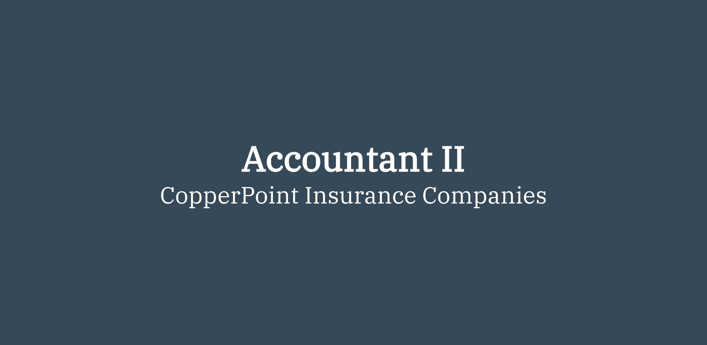 CopperPoint has an exciting opportunity for an Accountant II to join our team! In this role, you will perform intermediate-level accounting transactions, financial reporting, and financial analysis while ensuring accuracy and compliance with accounting principles, company policies, procedures, and internal controls. Responsibilities include preparing regulatory filings, analyzing financial data, maintaining general ledger accuracy, and supporting both internal and external audits. If you’re detail-oriented and enjoy working in a collaborative environment, we’d love to connect with you!