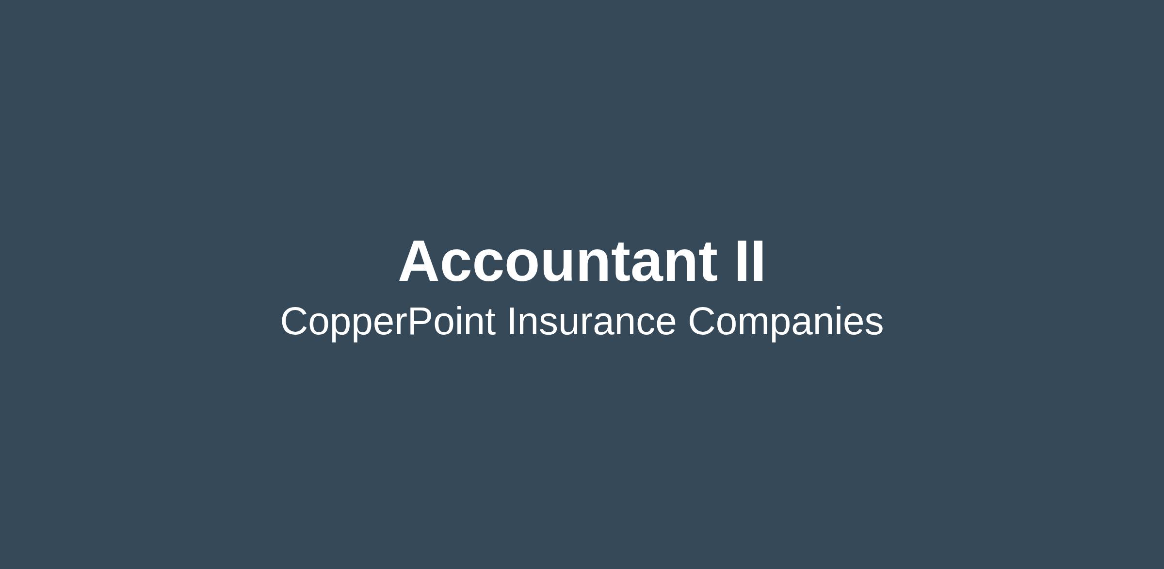 CopperPoint has an exciting opportunity for an Accountant II to join our team! In this role, you will perform intermediate-level accounting transactions, financial reporting, and financial analysis while ensuring accuracy and compliance with accounting principles, company policies, procedures, and internal controls. Responsibilities include preparing regulatory filings, analyzing financial data, maintaining general ledger accuracy, and supporting both internal and external audits. If you’re detail-oriented and enjoy working in a collaborative environment, we’d love to connect with you!