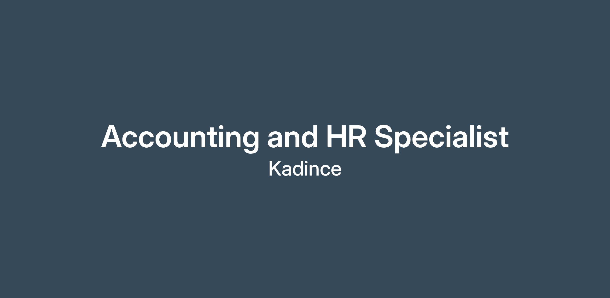To be the Accounting and HR Specialist at Kadince, you should have basic training in both HR/operations and accounting.