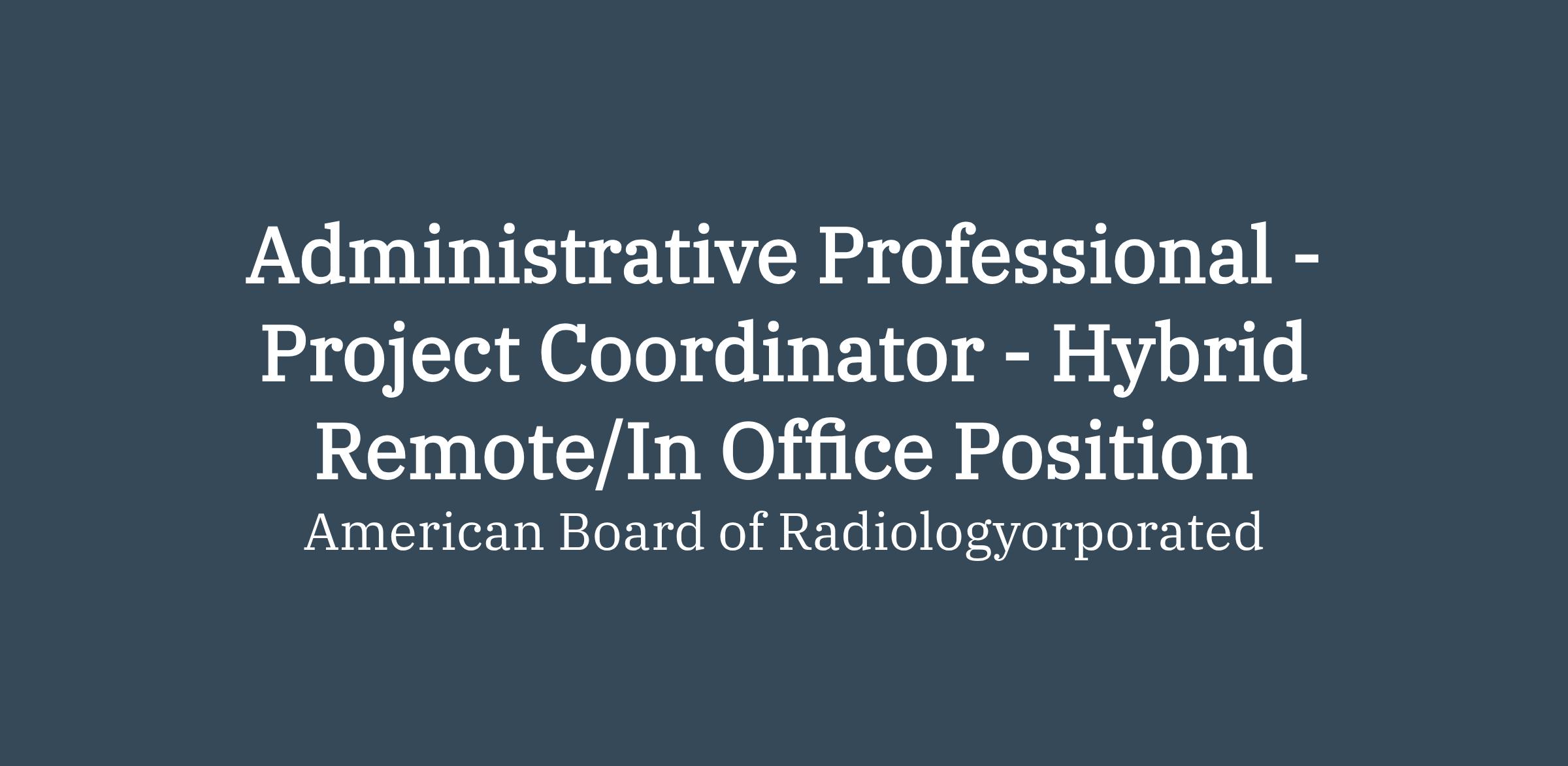 Administrative Professional - Project Coordinator - Hybrid Remote/In Office Position