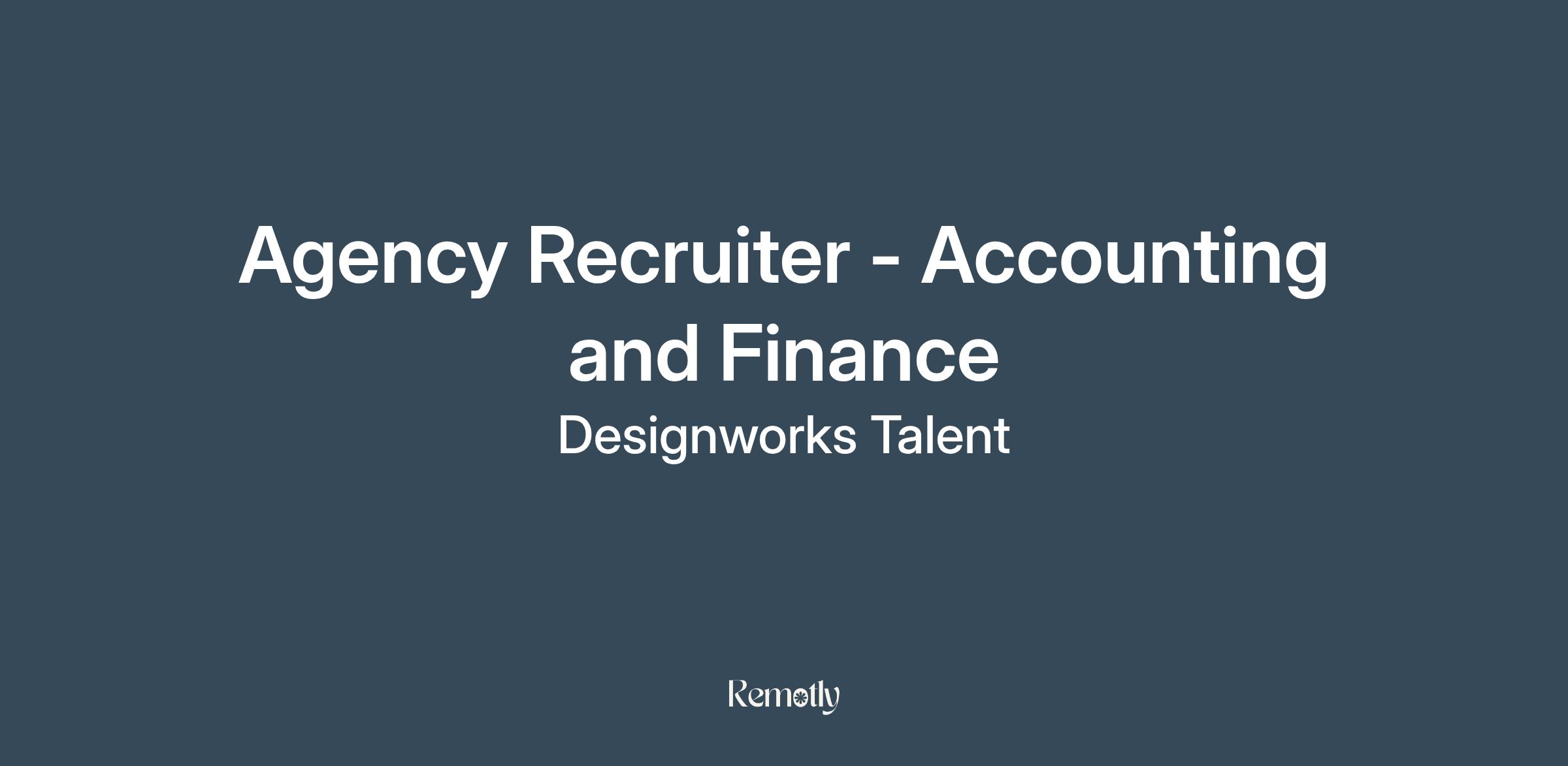 Role: Agency Recruiter – Accounting & Finance