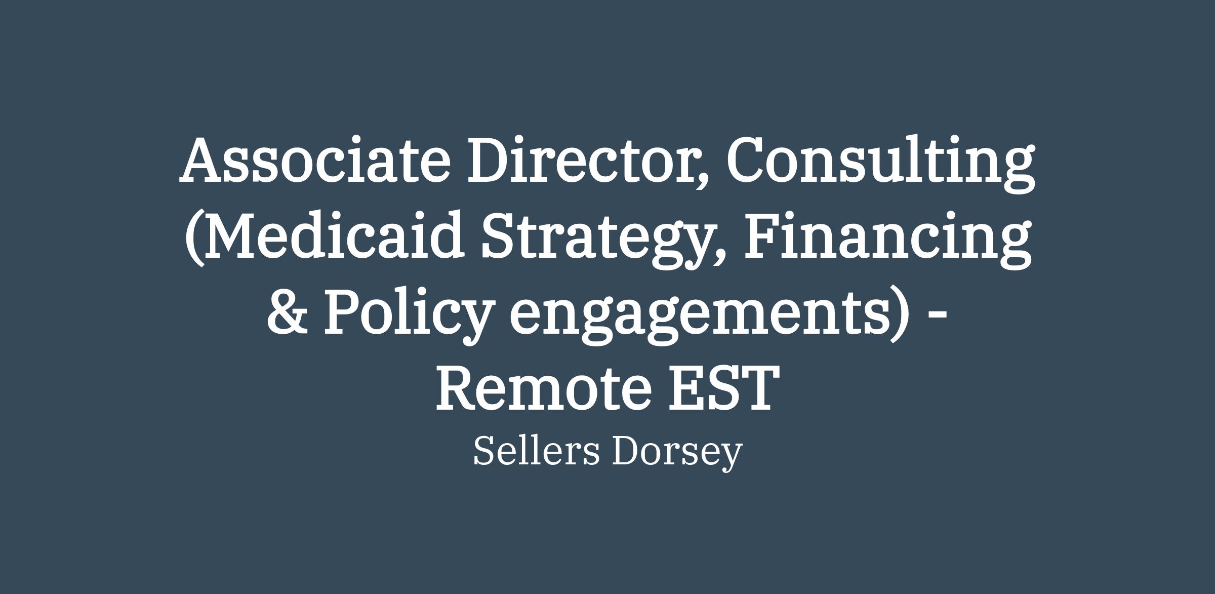 Sellers Dorsey is seeking an Associate Director, Consulting who will manage Sellers Dorsey client engagements focused on Medicaid strategy and financing, managed care, and provider policy and reimbursement. As the Associate Director, you will provide direct client consulting and leadership services including providing objective advice, expertise and specialized skills in healthcare policy, strategy and management with the aim of creating value, maximizing growth and/or improving the business performance of clients. You will support the Senior Director in delivering healthcare consulting services leveraging policy and/or industry expertise in areas such as Medicaid policy, benefits, provider reimbursement, regulatory compliance, managed care, and general business development. You will be responsible for client relationships at a senior level and/or responsible for all policy/technical aspects on projects. You will also deliver strategic advice and counsel to our Sellers Dorsey business partners, states, private companies and various associations or unions. You will be responsible for policy guidance, project management, client deliverables and satisfaction, and identification of new and expanded business activities.