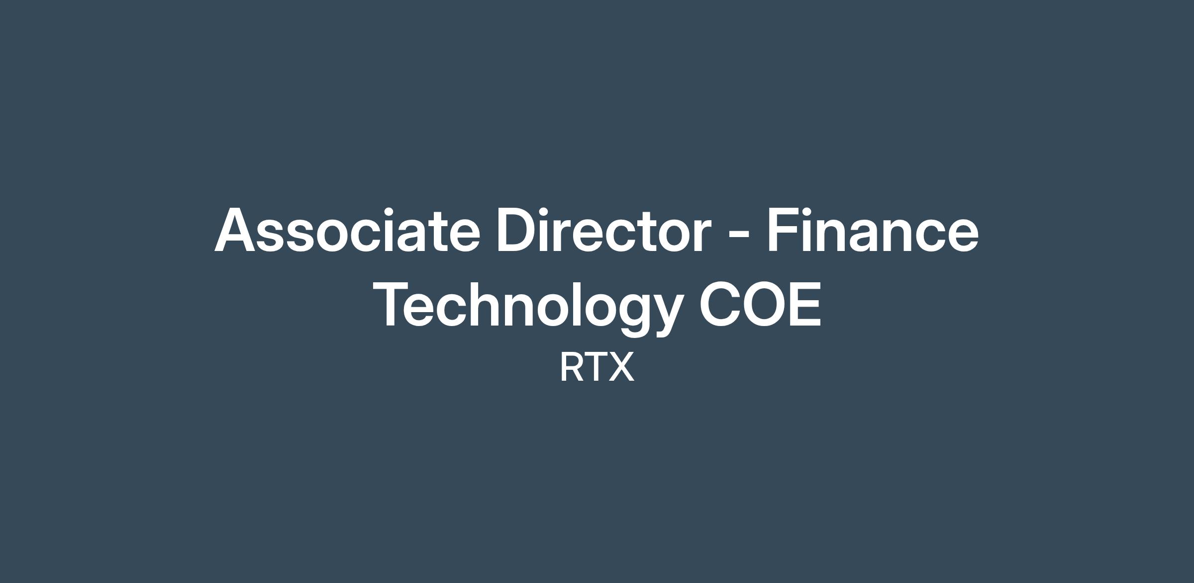 Associate Director - Finance Technology COE