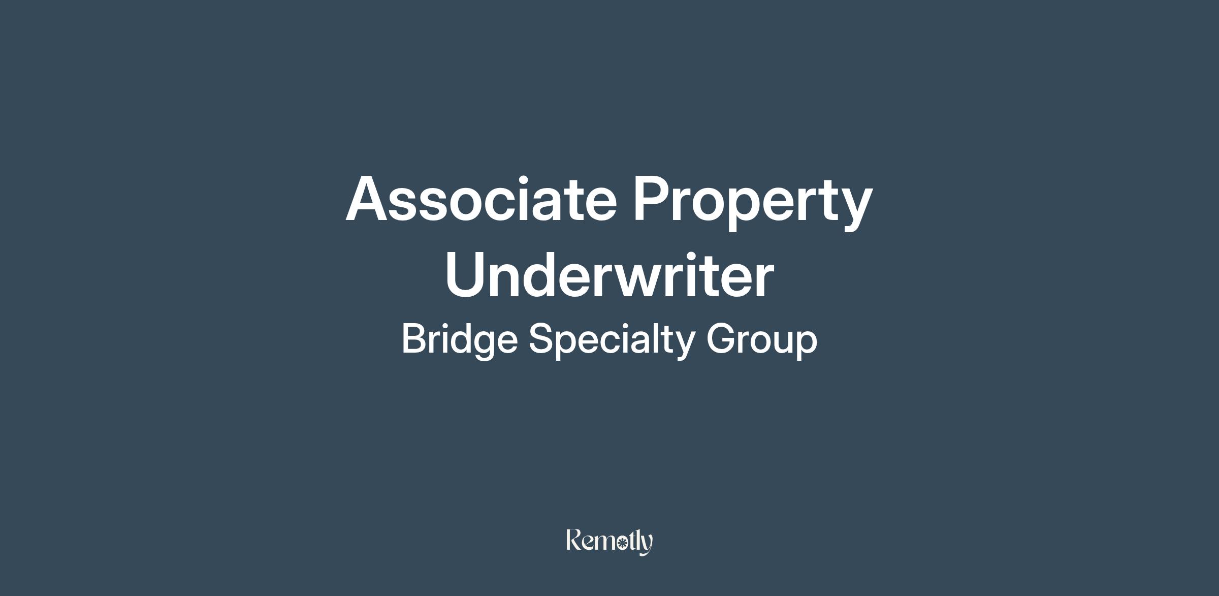Bridge Specialty Group is Seeking an Associate Property (CAT/Hurricane) Underwriter to join our growing team in Boulder, CO.