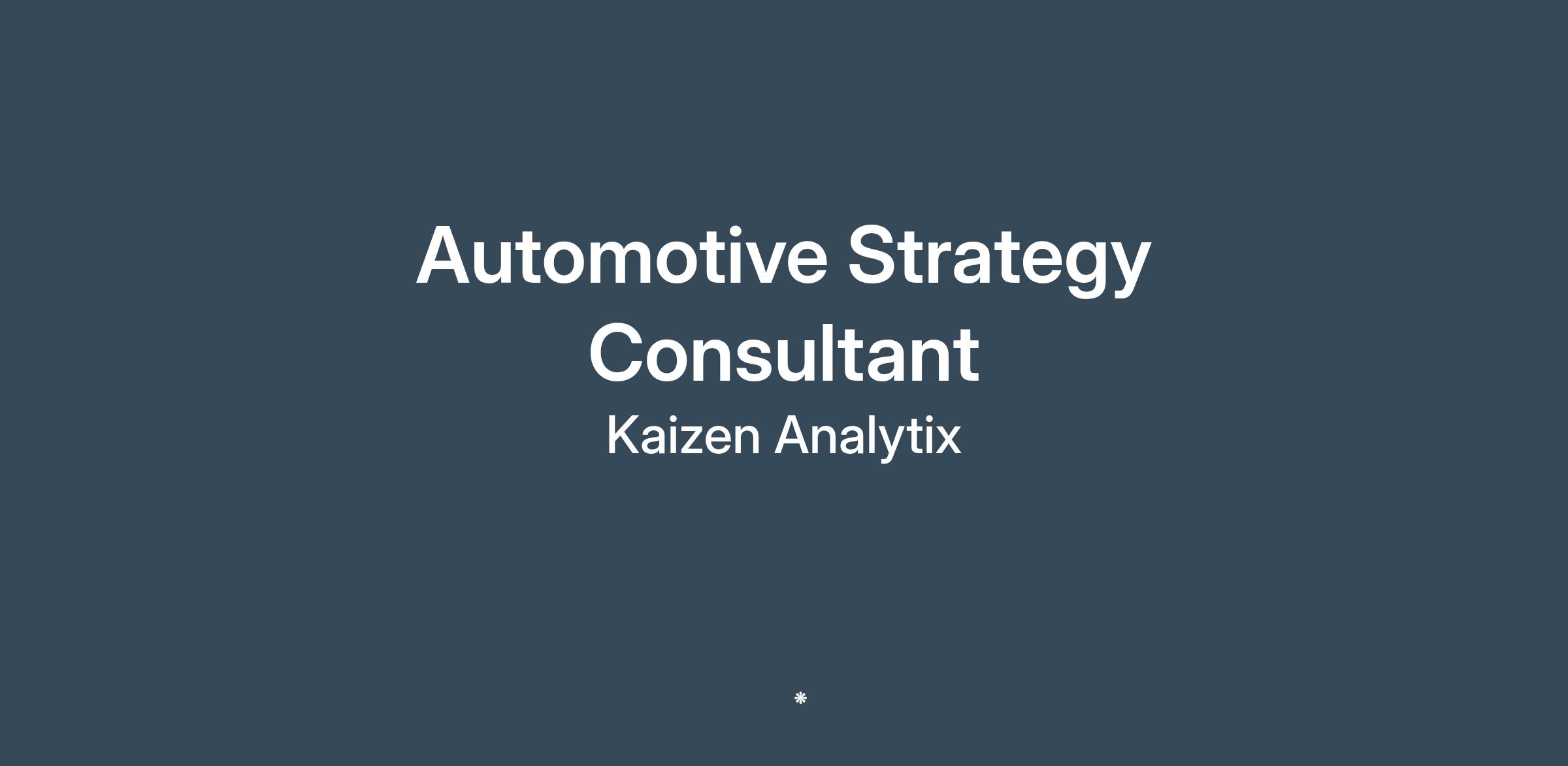 - Conduct rigorous market research and industry analyses to identify emerging trends, risks, and opportunities within automotive.
