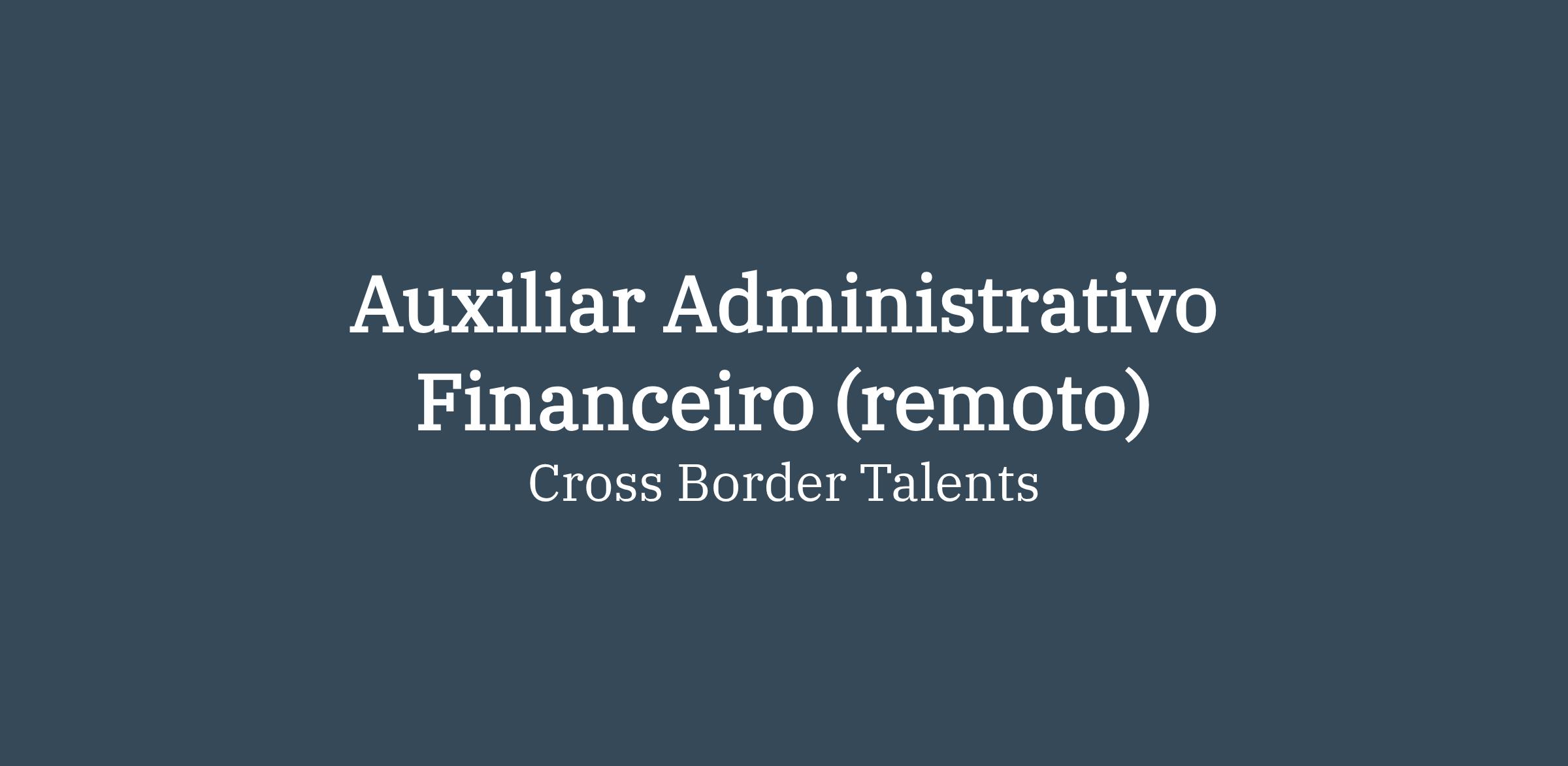 Estamos em busca de um(a) Auxiliar Administrativo Financeiro para atuar em um time dinâmico, colaborativo e com energia positiva. A posição é 100% remota, permitindo trabalho de qualquer lugar do Brasil.