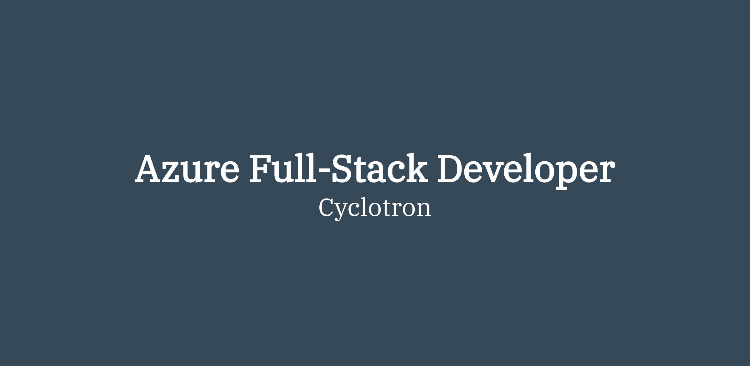 Overview The Azure Full Stack Developer will lead the creation of high-value data driven solutions leveraging Cyclotron’s proven implementation methodology and solutions for enterprise projects, as well as contributing to technical pre-sales activities as required. You will be responsible for designing solution architecture, requirement definition, and leading the project delivery team. You will have the opportunity to work with and learn the latest cloud solutions in an exciting work environment. This position will work collaboratively across all Cyclotron’s sales, service delivery and project management organizations in service to Cyclotron’s clients.