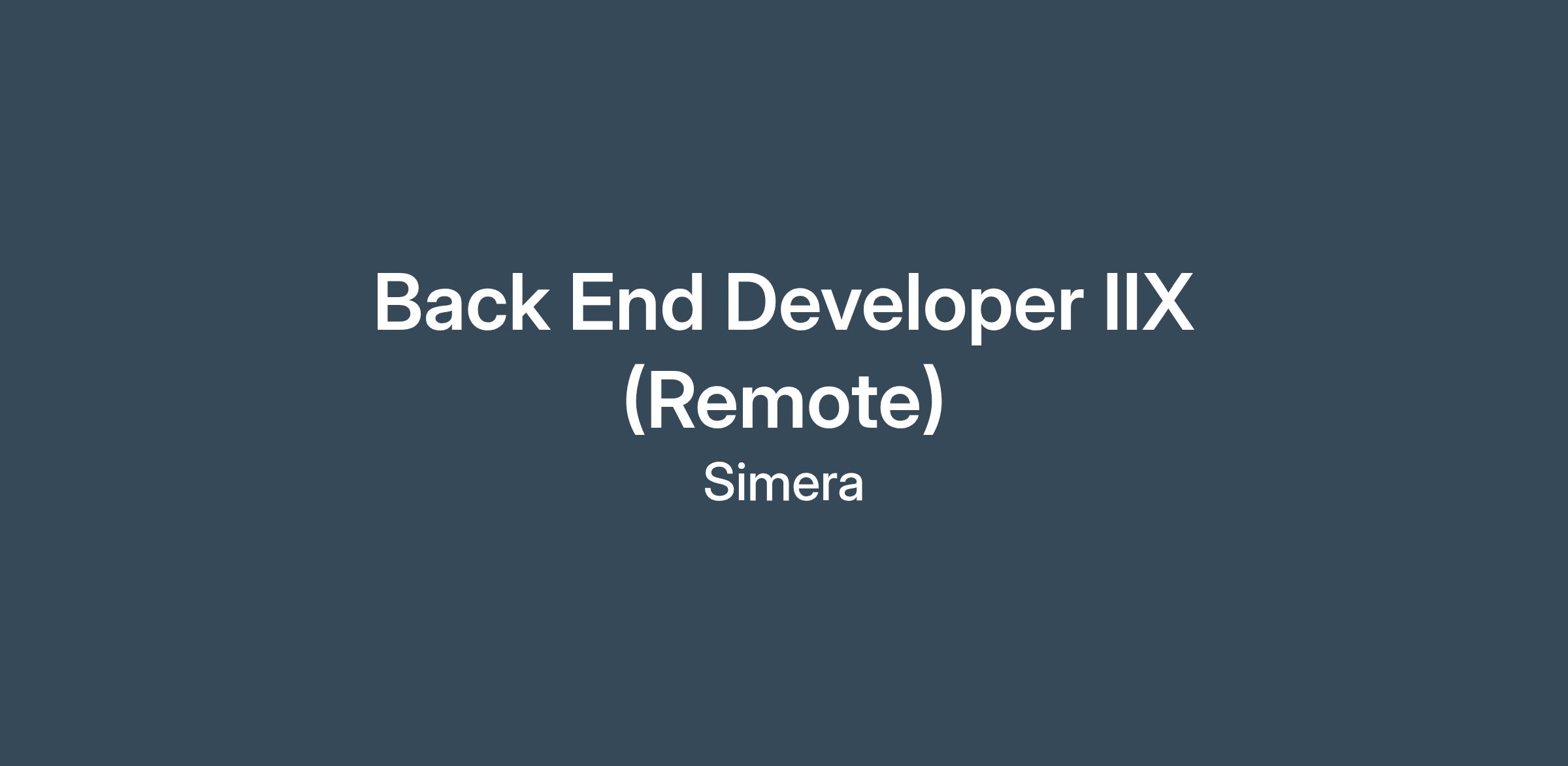 Back End Developer IIX (Remote)