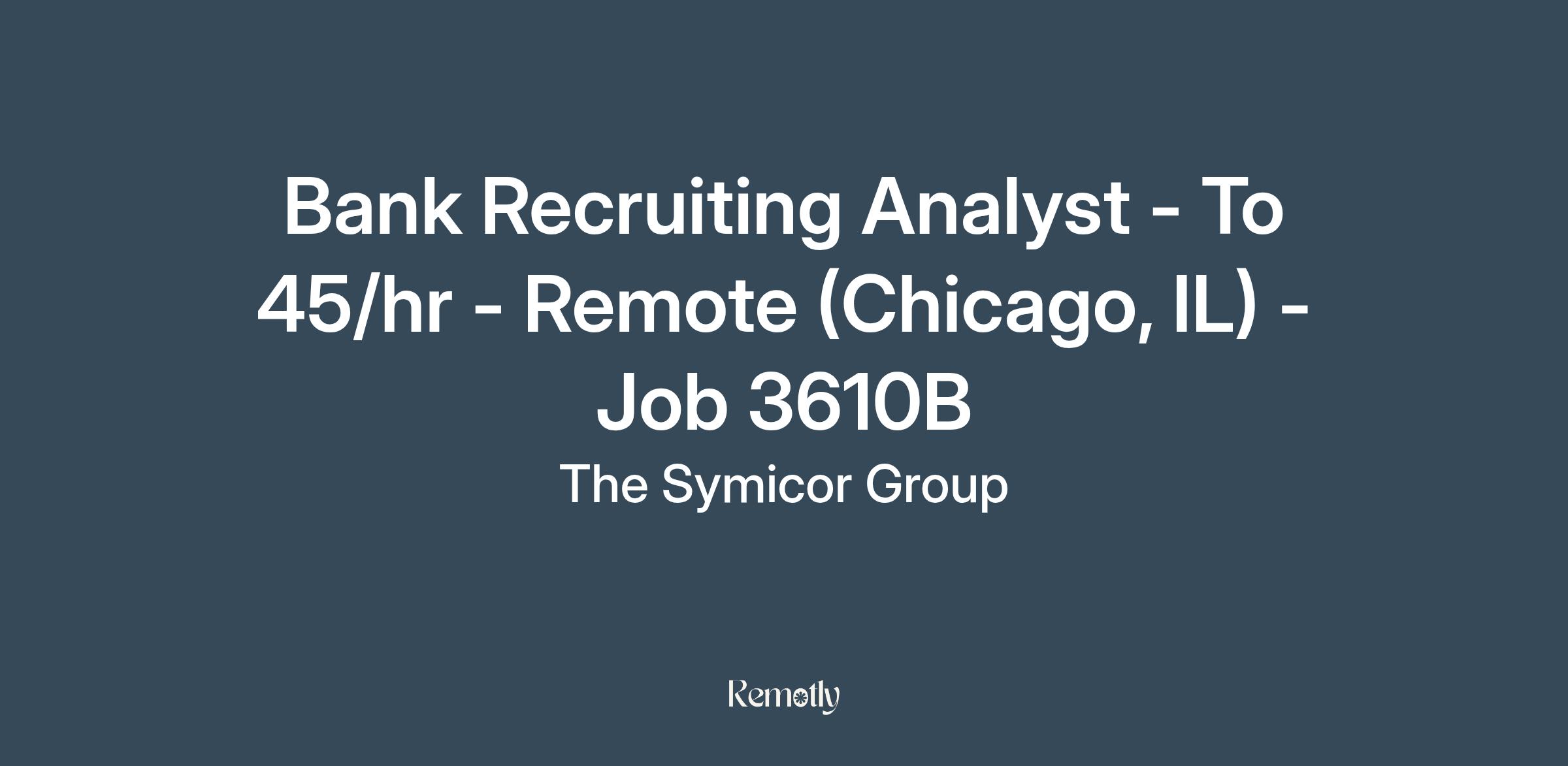 Bank Recruiting Analyst – To $45/hr - Remote (Chicago, IL) – Job # 3610B
