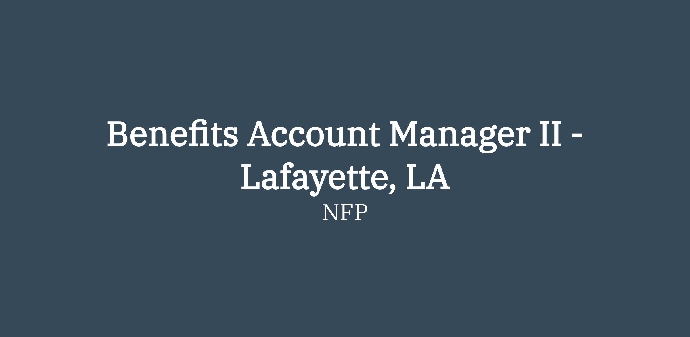 The Account Manager II is responsible for working with Producers and Directors to service client accounts in the Lafayette, Louisiana market. The position requires day to day client servicing for a specific set of clients and entails a great deal of verbal, electronic and other written communications. The Account Manager II will research, analyze and evaluate medical, life, disability and other benefit plans and act as a benefit advisor to clients. At this level, an Account Manager II will lead open enrollment presentations and take an active role in client meetings. Work is completed with a significant amount of independent discretion. While in this role, this person should be developing relationships with clients and carrier contacts and working proactively to effectively and efficiently deliver services to clients.