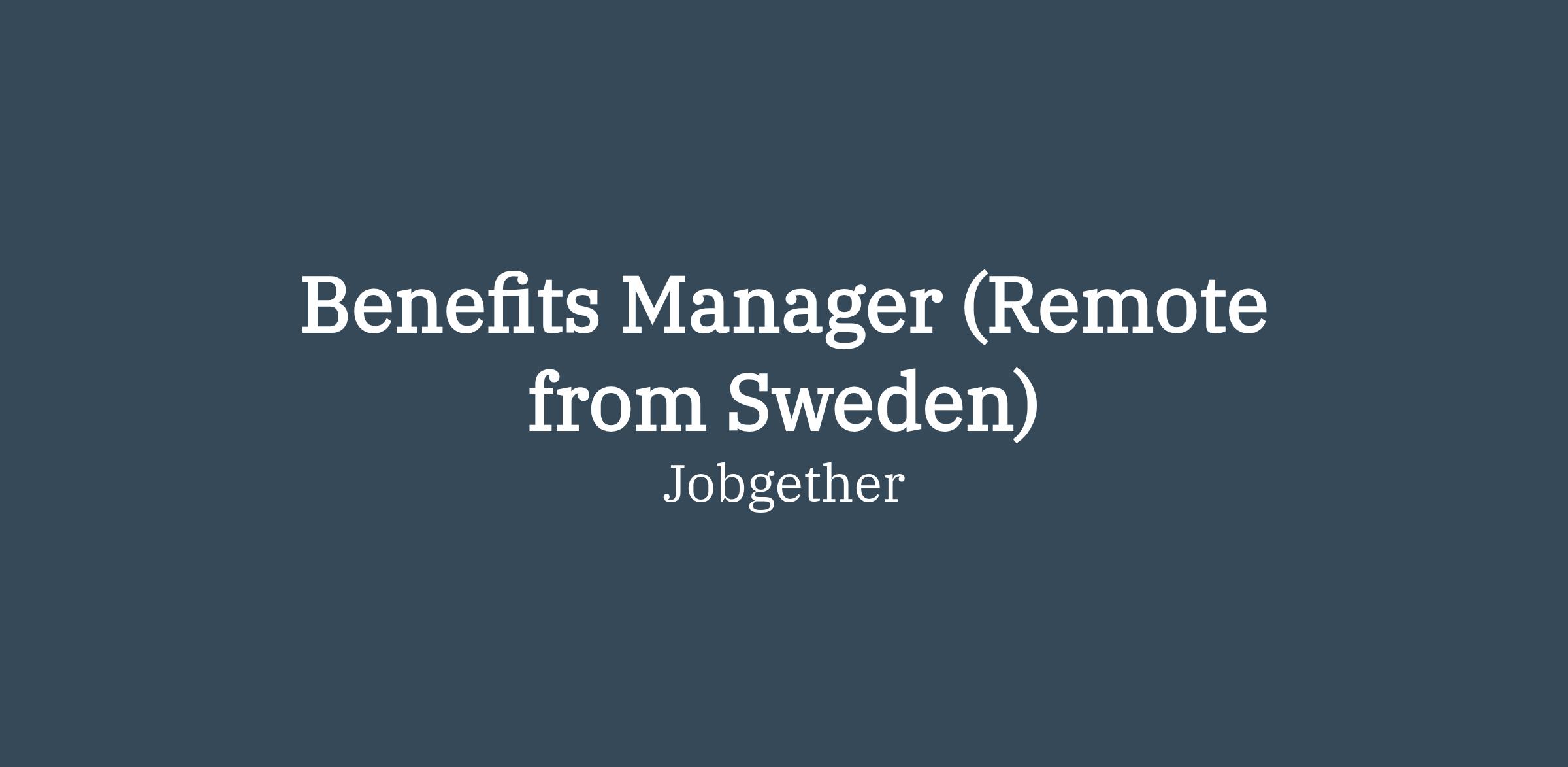 This position is posted by Jobgether on behalf of a partner company. We are currently looking for a Benefits Manager in Sweden.