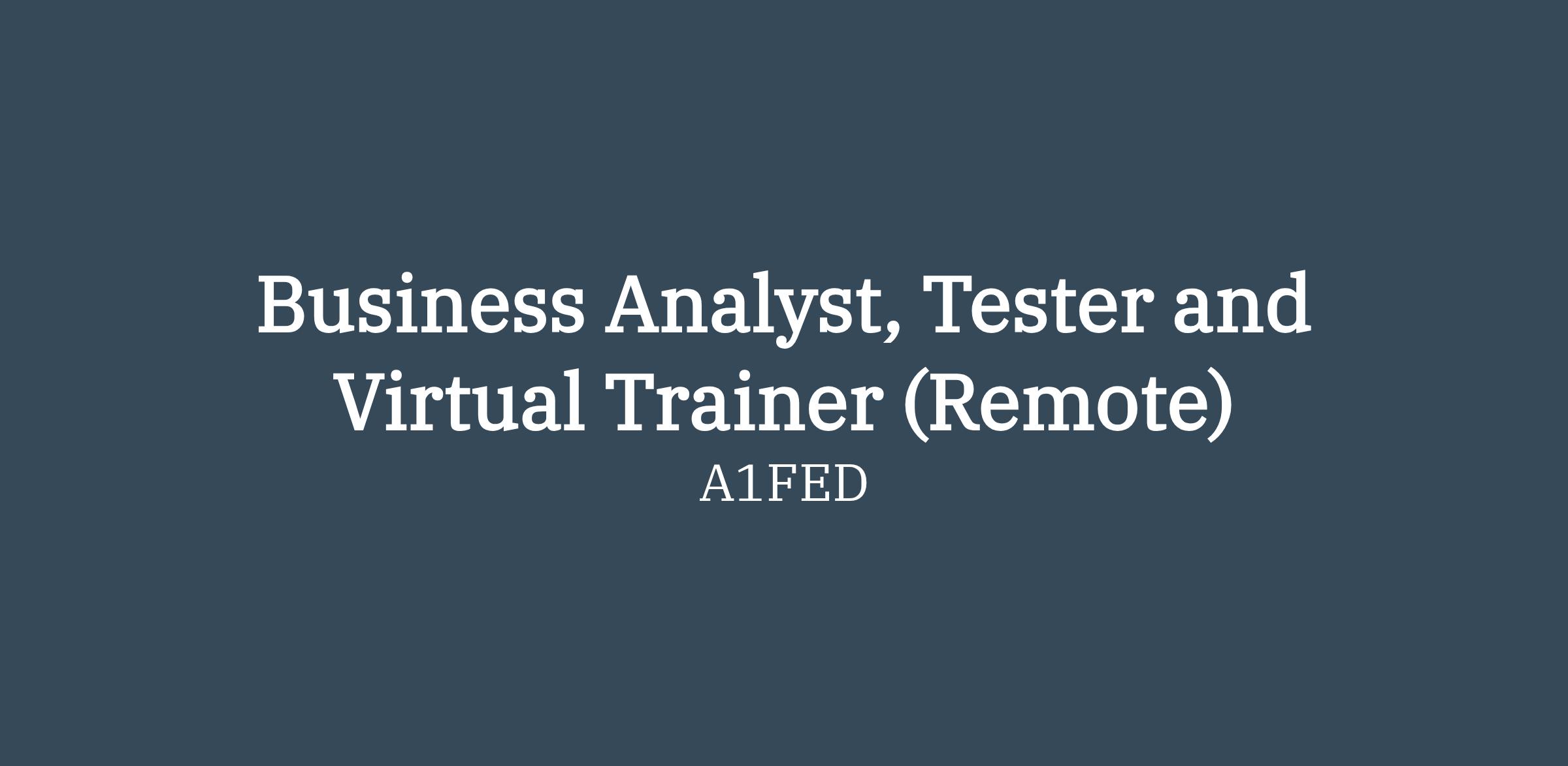 Business Analyst, Tester and Virtual Trainer (Remote)