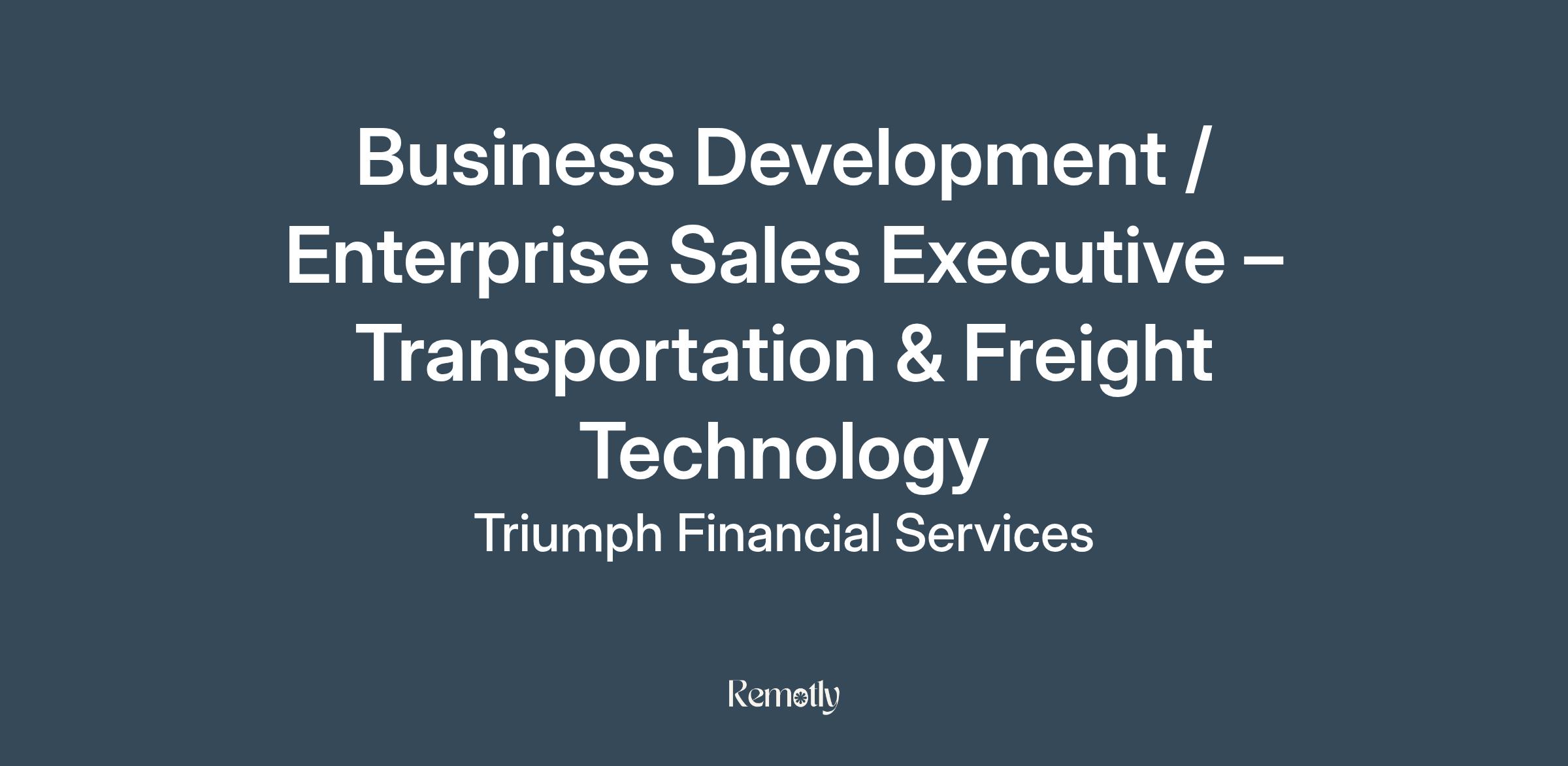 Join Triumph as a Business Development/Enterprise Sales Executive. Drive B2B growth in the transportation & freight technology sector. Apply now!