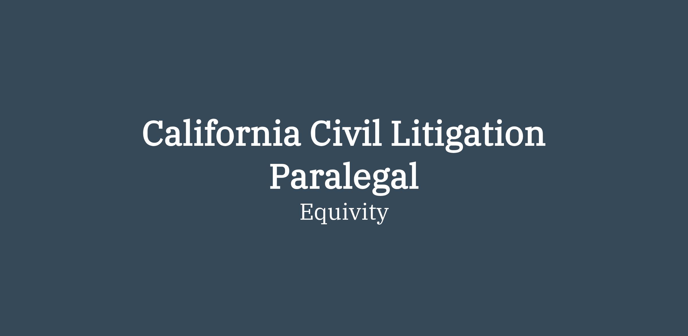 Equivity is seeking an experienced California Civil Litigation Paralegal to support attorneys handling estate litigation, elder abuse defense, medical malpractice defense, and healthcare litigation involving skilled nursing facilities. This position offers the opportunity to work with California-based attorneys whose practices focus on complex estate and healthcare-related litigation. We are looking for a highly organized, detail-oriented professional with strong knowledge of California civil procedure who can manage multiple cases, anticipate attorney needs, and thrive in a remote environment.