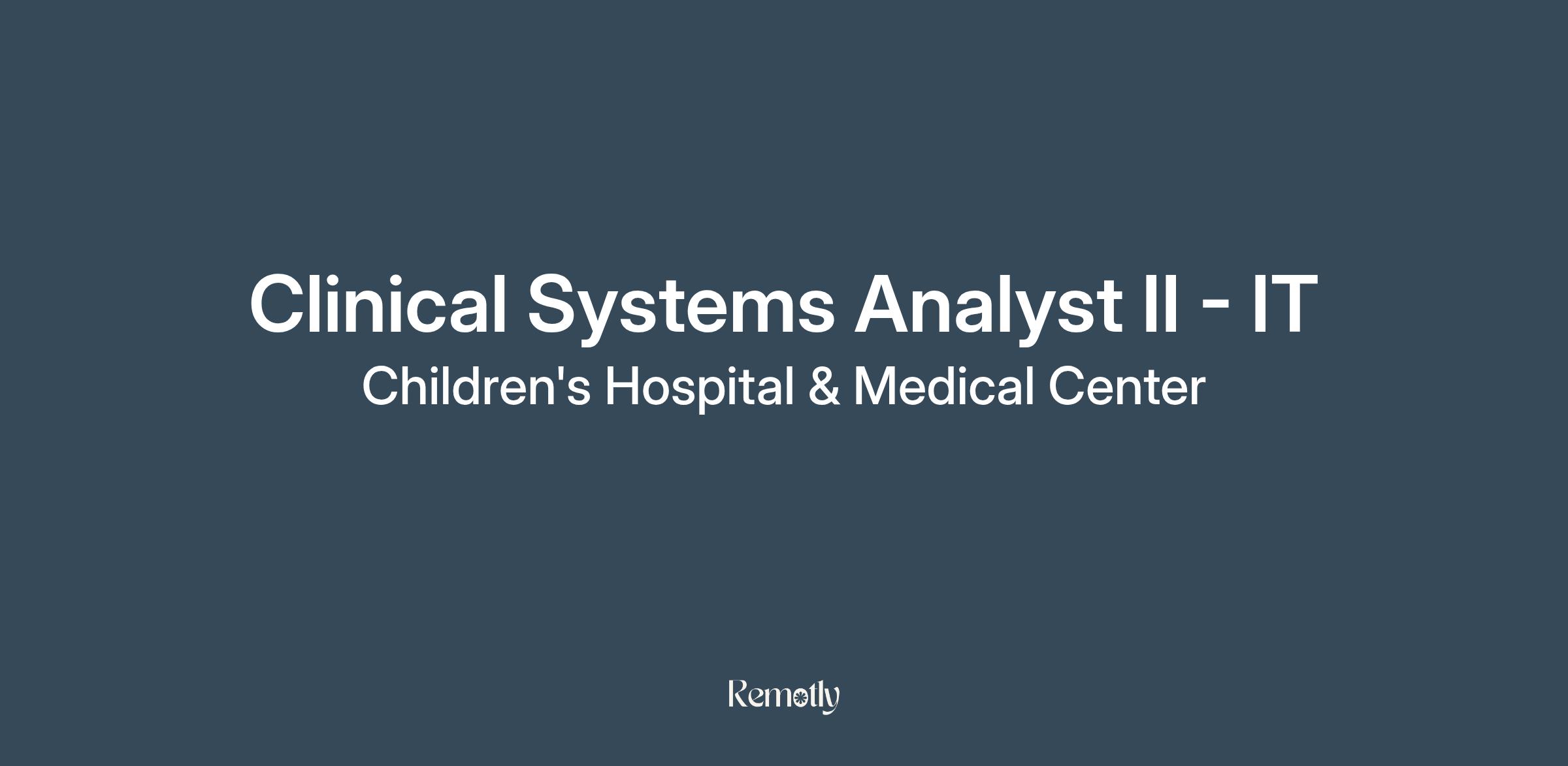 - Analyze, design, configure, test and maintain Children’s Hospital & Medical Center’s clinical applications through collaboration with members of care teams, operational leaders, technical team members and other relevant stakeholders.