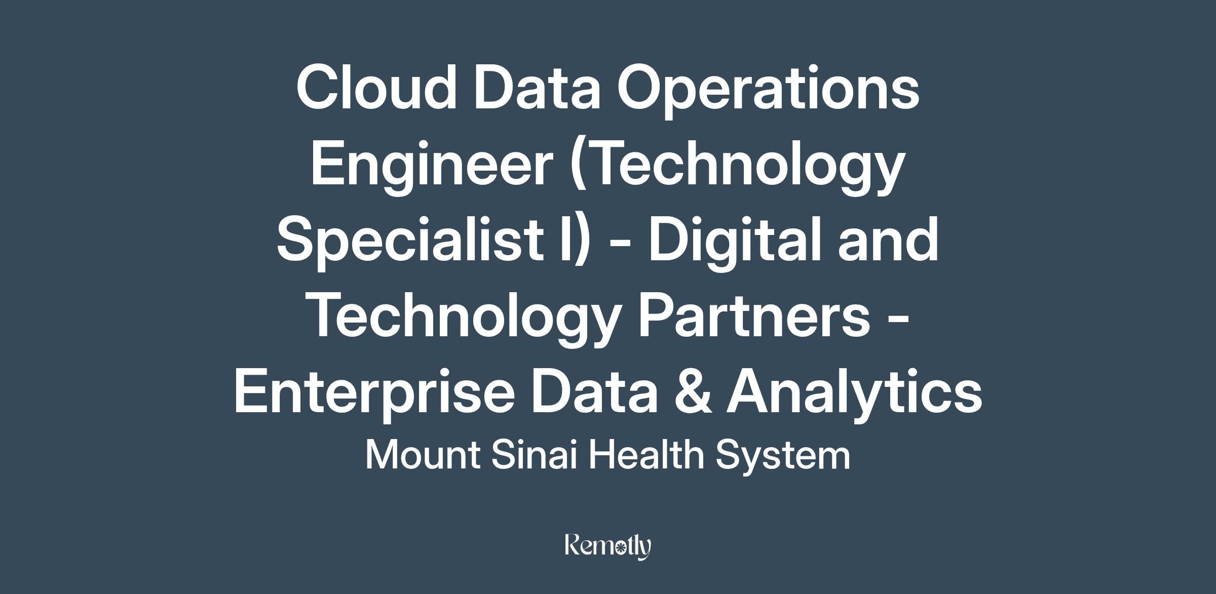 DescriptionMount Sinai’s Enterprise Data Cloud team is seeking a Cloud Data Operations Engineer with both problem-solving and Cloud engineering skills to assist in various Cloud Services and Data Management projects. The focus of this role is to support Director of Data Cloud Engineering in planning, design, implementation and support deployments. To ensure Data Cloud implementation is aligned with the Digital Technology Partner (DTP) strategy and Enterprise architecture. The Cloud Engineering Lead will be responsible for providing technical support for Data Cloud deployment, primarily on Microsoft Azure and/or support in the creation and delivery of technology solutions designed to meet Mount Sinai business needs. Candidate should be a self-driven individual who can work with internal and external stakeholders and also mentor other junior resources on Cloud adoption within the current or extended DTP team.