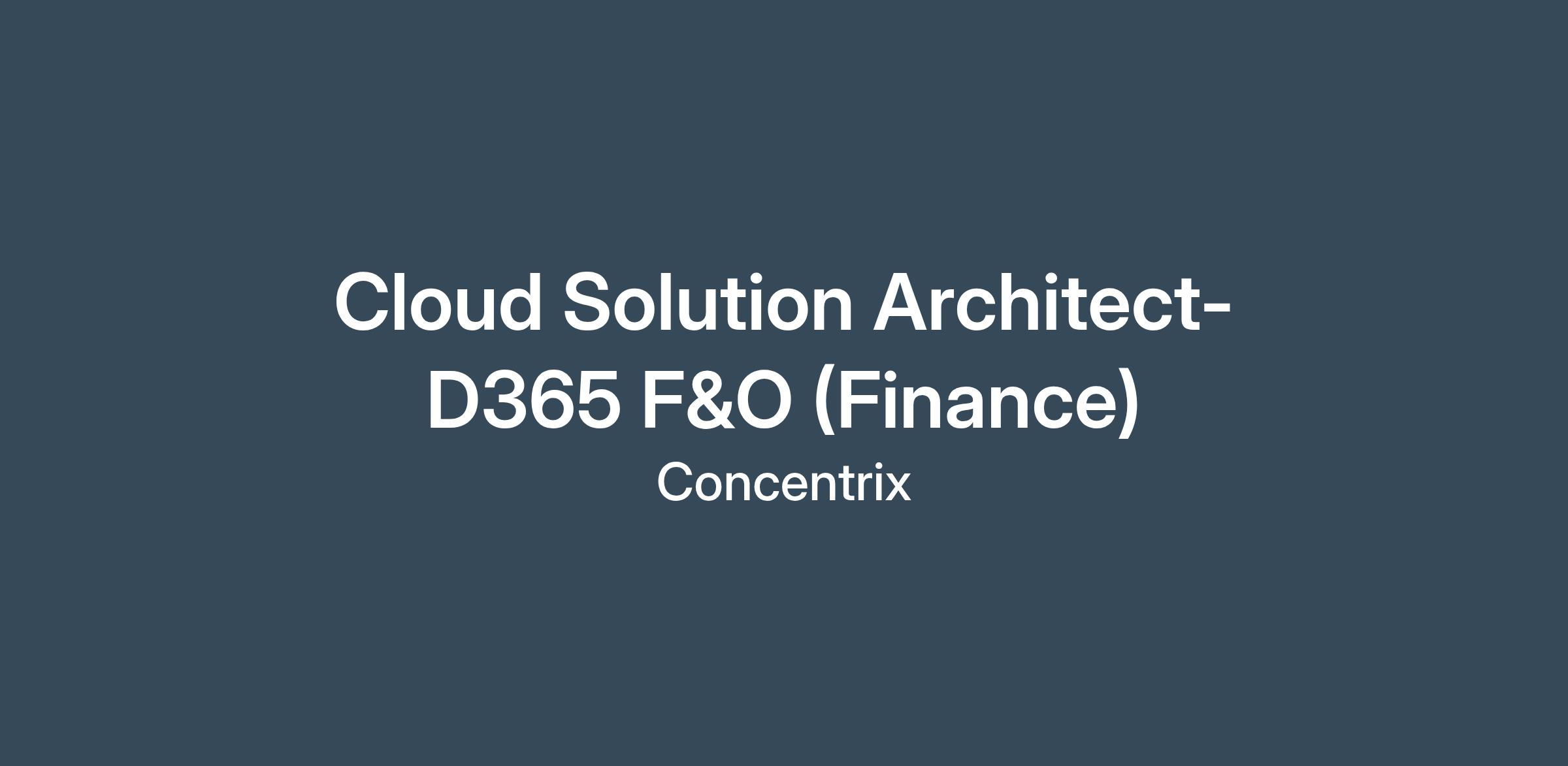 Cloud Solution Architect- D365 F&O (Finance)Job Description