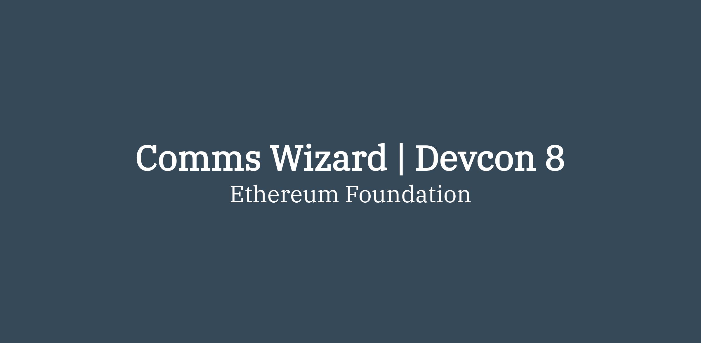 We are looking for a Communications Wizard to plan and execute communications for Devcon 8.