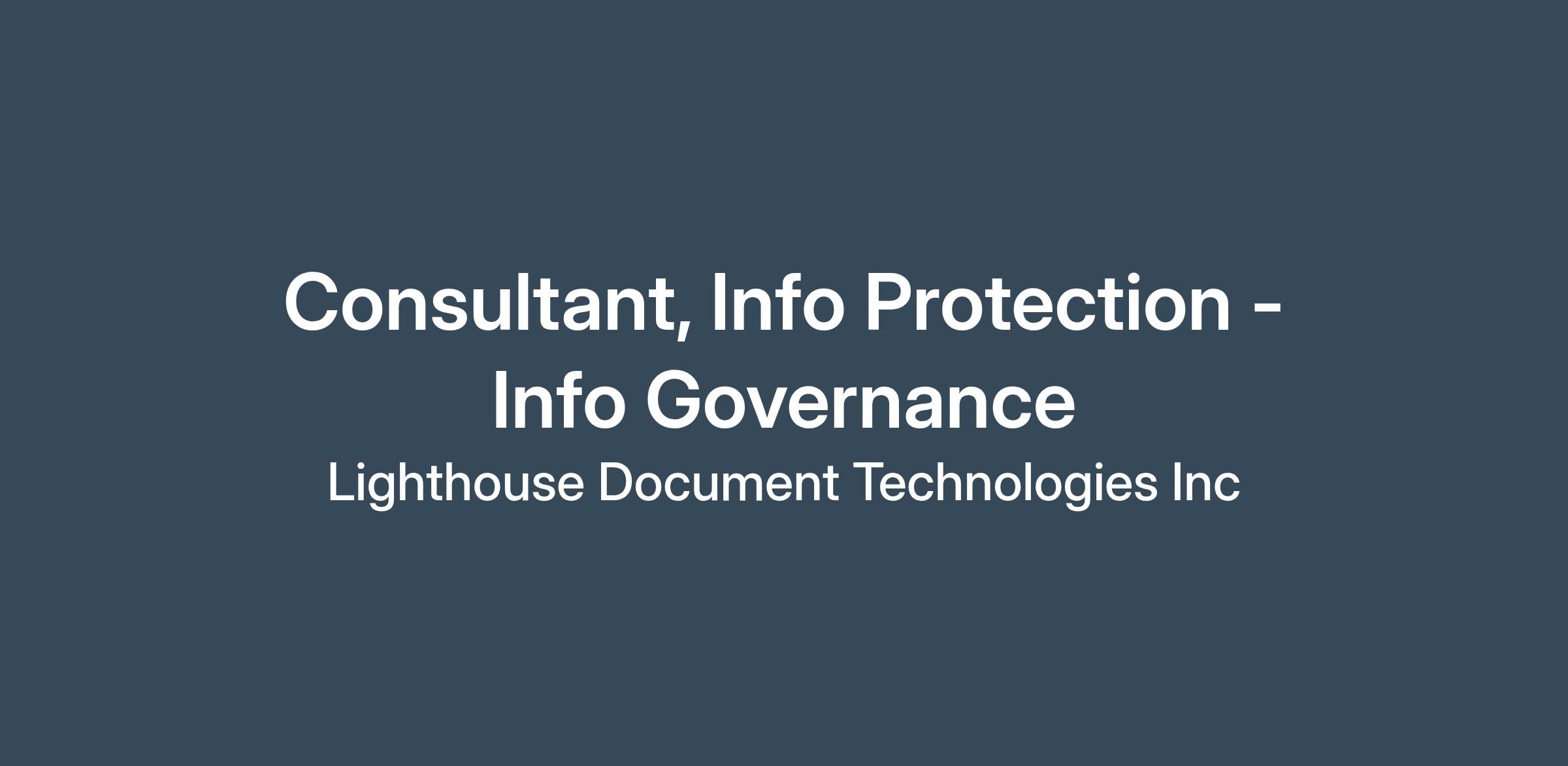 The Consultant, Information Protection – Information Governance, will focus on the design, customization, and implementation of M365 Purview Data security solutions. This role will support engagements with a wide range of organizations while also working as a member of Lighthouse’s Information Governance Consulting team providing world-class solutions around the Microsoft technology stack.