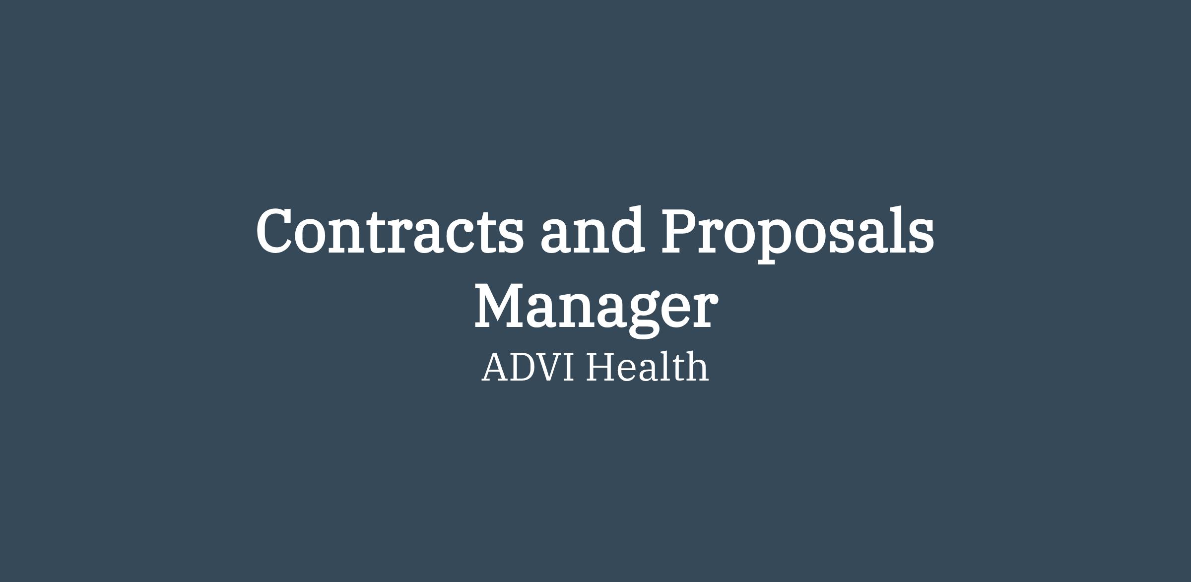 ADVI Health is seeking a Contracts and Proposals Manager to join our Business Development team. This role is responsible for managing the development of client proposals and contracts across our policy, market access, health economics and outcomes research (HEOR), and reimbursement service areas.
