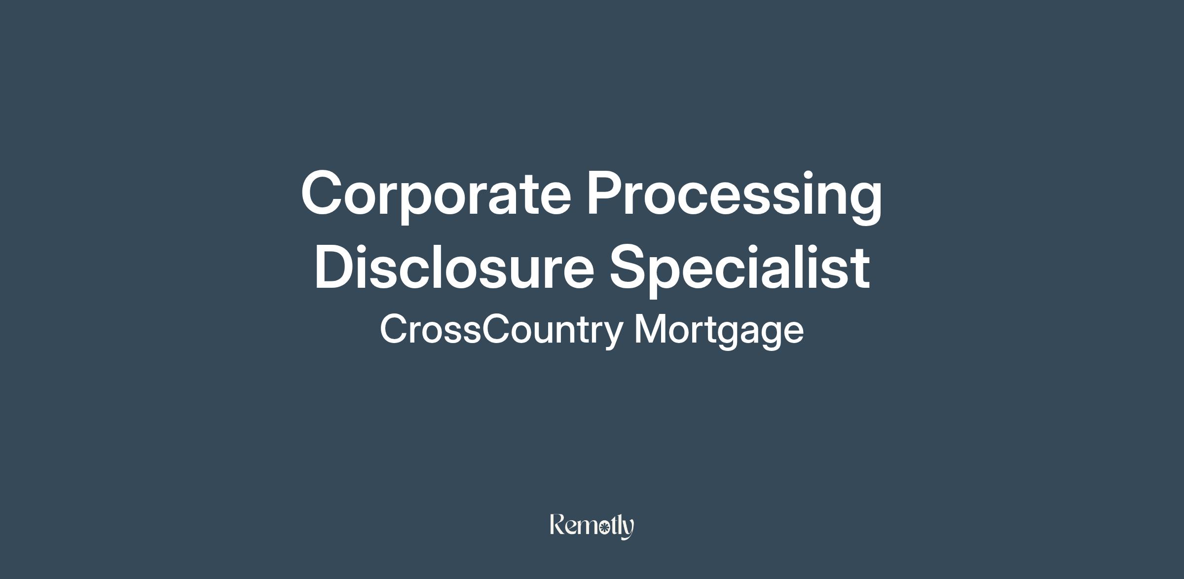 The Corporate Processing Disclosure Specialist aids in the generation and distribution of mortgage loan application disclosures and reviews and ensures accuracy and data integrity of required disclosure documents. This role interacts and coordinates with mortgage loan originators (MLO), processors and other production support staff. The Corporate Processing Disclosure Specialist monitors and tests various aspects of loan files to ensure compliance with TRID, ECOA, etc.