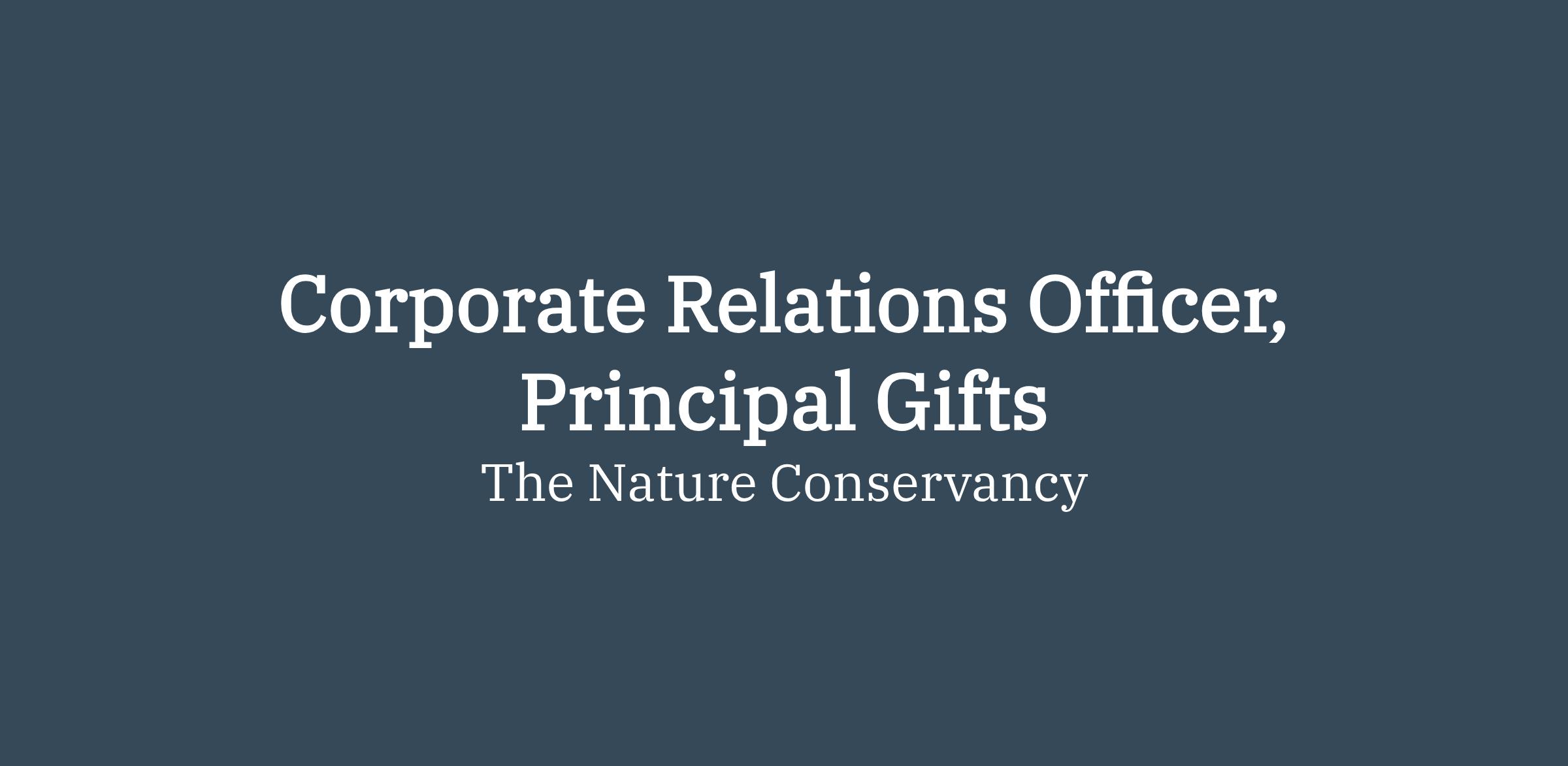 The Nature Conservancy (TNC) is a global environmental nonprofit dedicated to conserving the lands and waters on which all life depends. The Corporate Relations Officer – Principal Gifts will lead an influential corporate philanthropy portfolio mobilizing companies to drive transformative impact for climate, oceans, freshwater, regenerative agriculture, and resilient communities. This role serves as a strategist, dealmaker, and thought partner to unlock meaningful and measurable impact for people and nature alike. With a mandate to innovate and the backing of one of the world’s most trusted environmental organizations, the Corporate Relations Officer will shape high-value collaborations, inspire corporate leaders, and help accelerate solutions at the scale the planet demands.