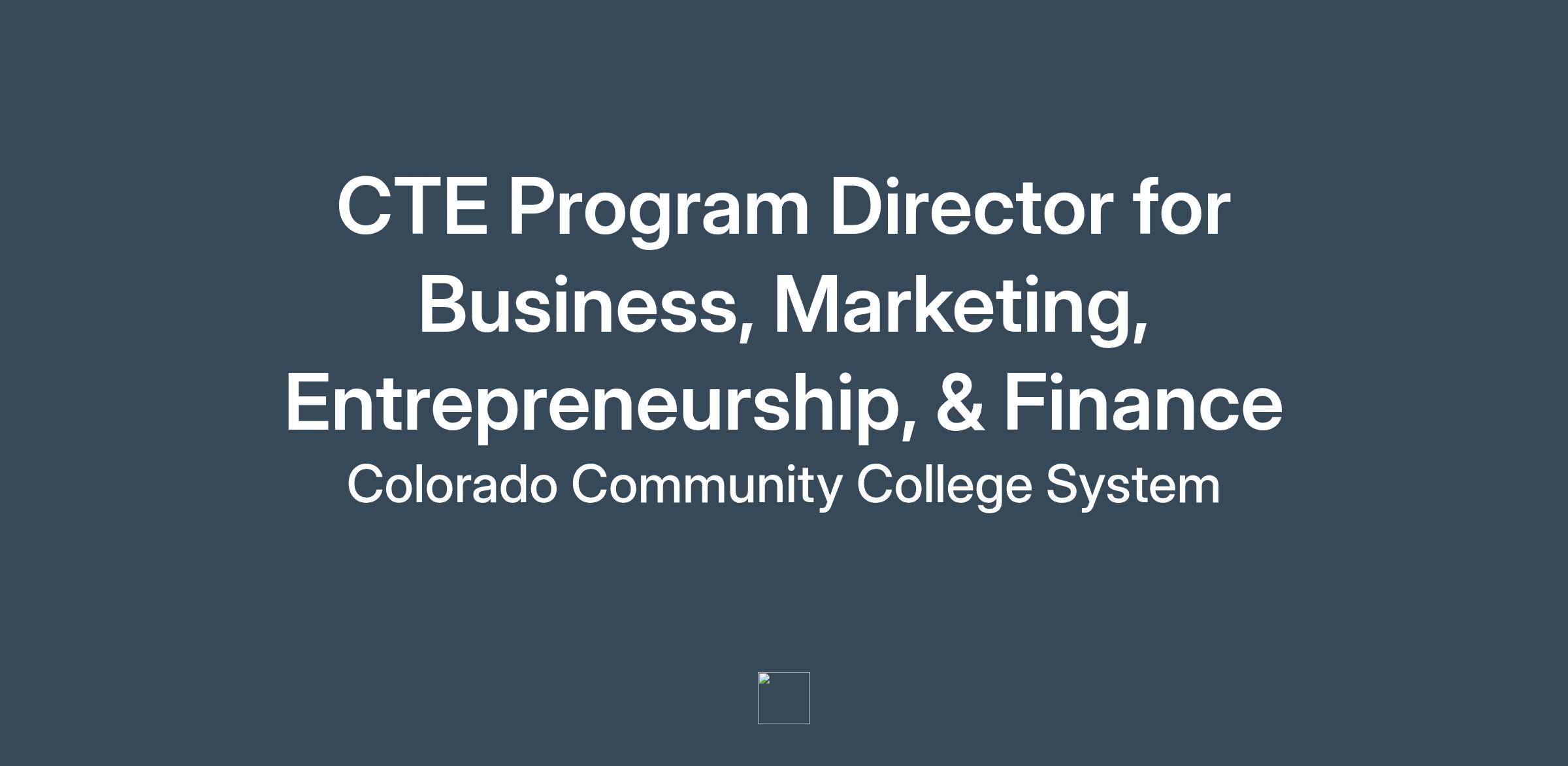 The Colorado Community College System (CCCS) is hiring a Program Director for Business, Marketing, Entrepreneurship, and Finance (BMEF) to join our System Office’s Career & Technical Education (CTE) department. We’re looking for someone who has a deep understanding of the current business education environment in our state. If you are looking for an opportunity to lead CTE business and work with two established and successful student organizations that help shape the future of business in Colorado, this position may be for you! CCCS provides generous leave, excellent benefits, and flexible work schedules, including hybrid-remote work within the state of Colorado.