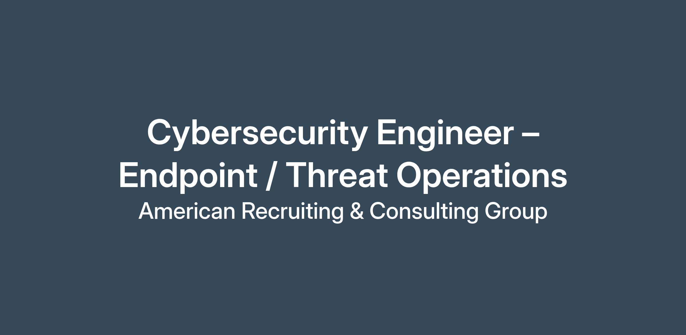Cybersecurity Engineer – Endpoint / Threat OperationsARC Group has an immediate opportunity for a Cybersecurity Engineer! This position is 100% remote. This is starting out as a contract position running through July 2026 with strong potential to extend longer or possibly convert to FTE. This is a fantastic opportunity to join an established and well-respected organization offering tremendous career growth potential.