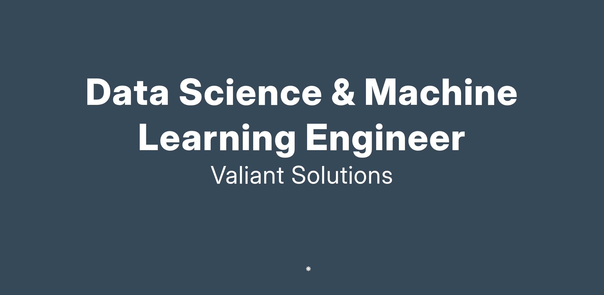 Valiant Solutions is seeking a Data Science & Machine Learning Engineer to join our rapidly growing and innovative cybersecurity team!