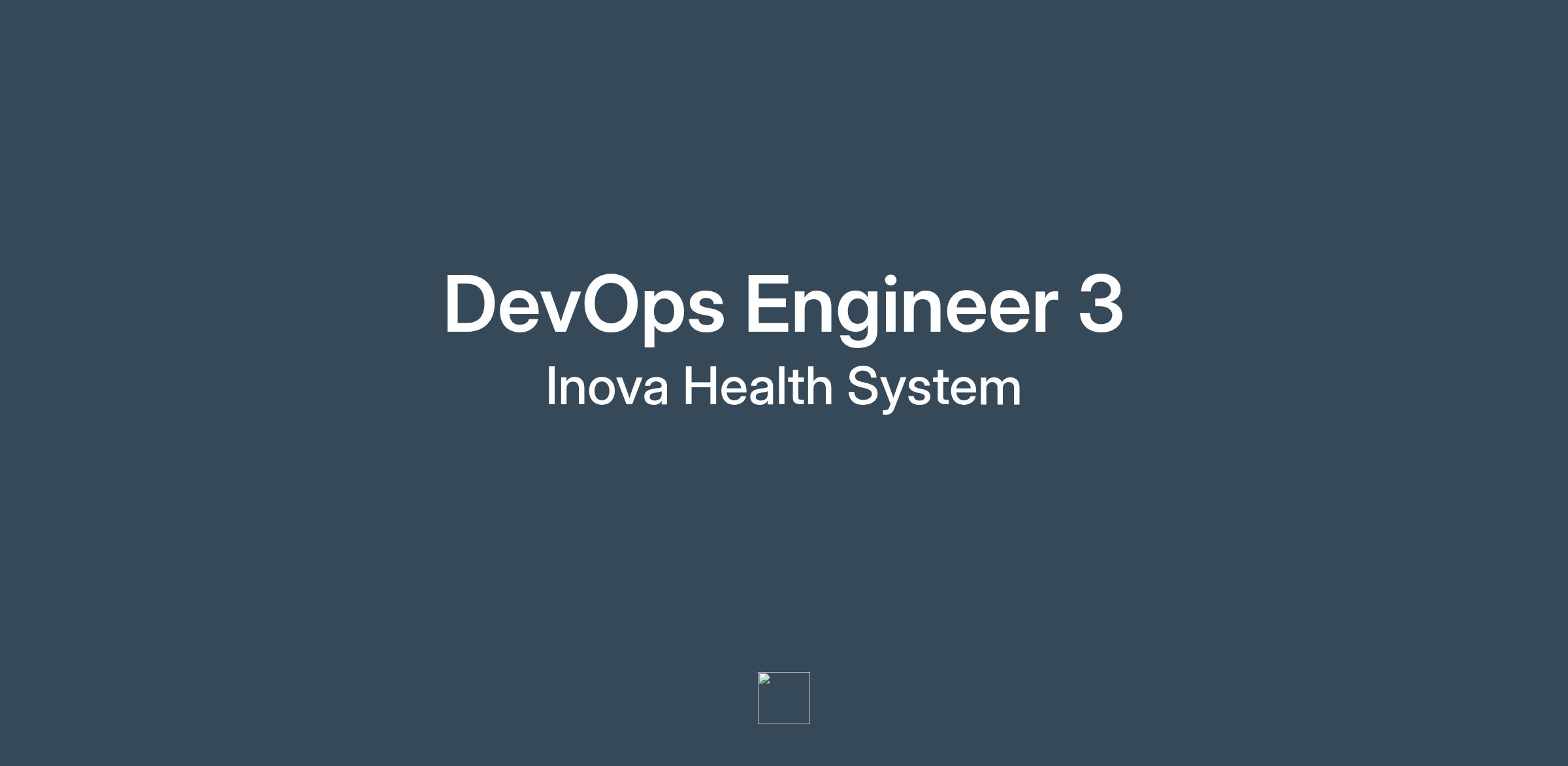 DescriptionInova Health is looking for a dedicated DevOps Engineer 3 to join the Team. This remote role will be full-time day-shift from Monday – Friday.