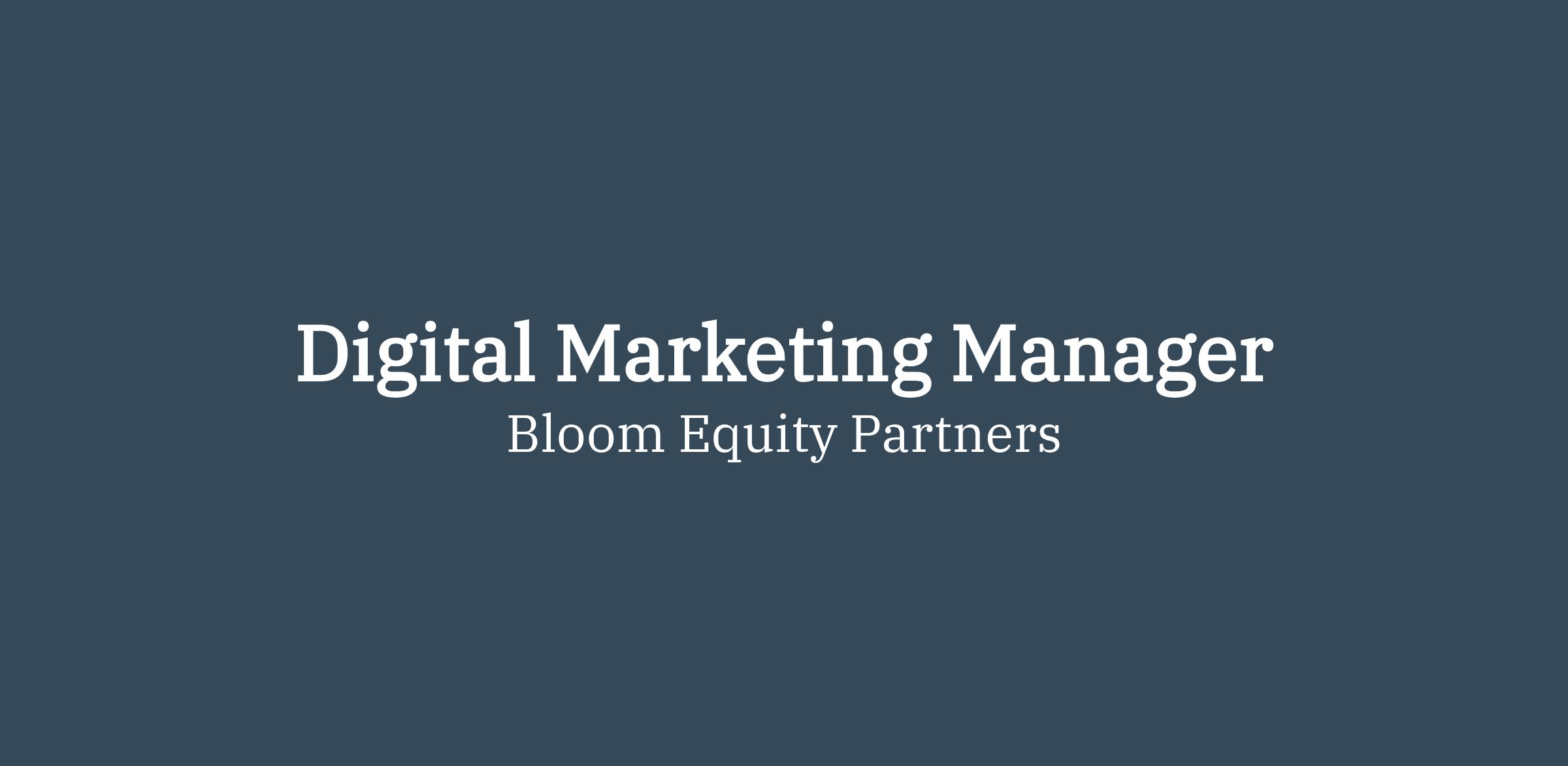 Bloom Equity Partners invests in B2B SaaS and tech-enabled services businesses, partnering with management teams to accelerate growth through operational excellence. As our portfolio companies scale—organically and through acquisition—digital marketing becomes a critical lever for pipeline generation, revenue growth, and brand authority.Role Purpose