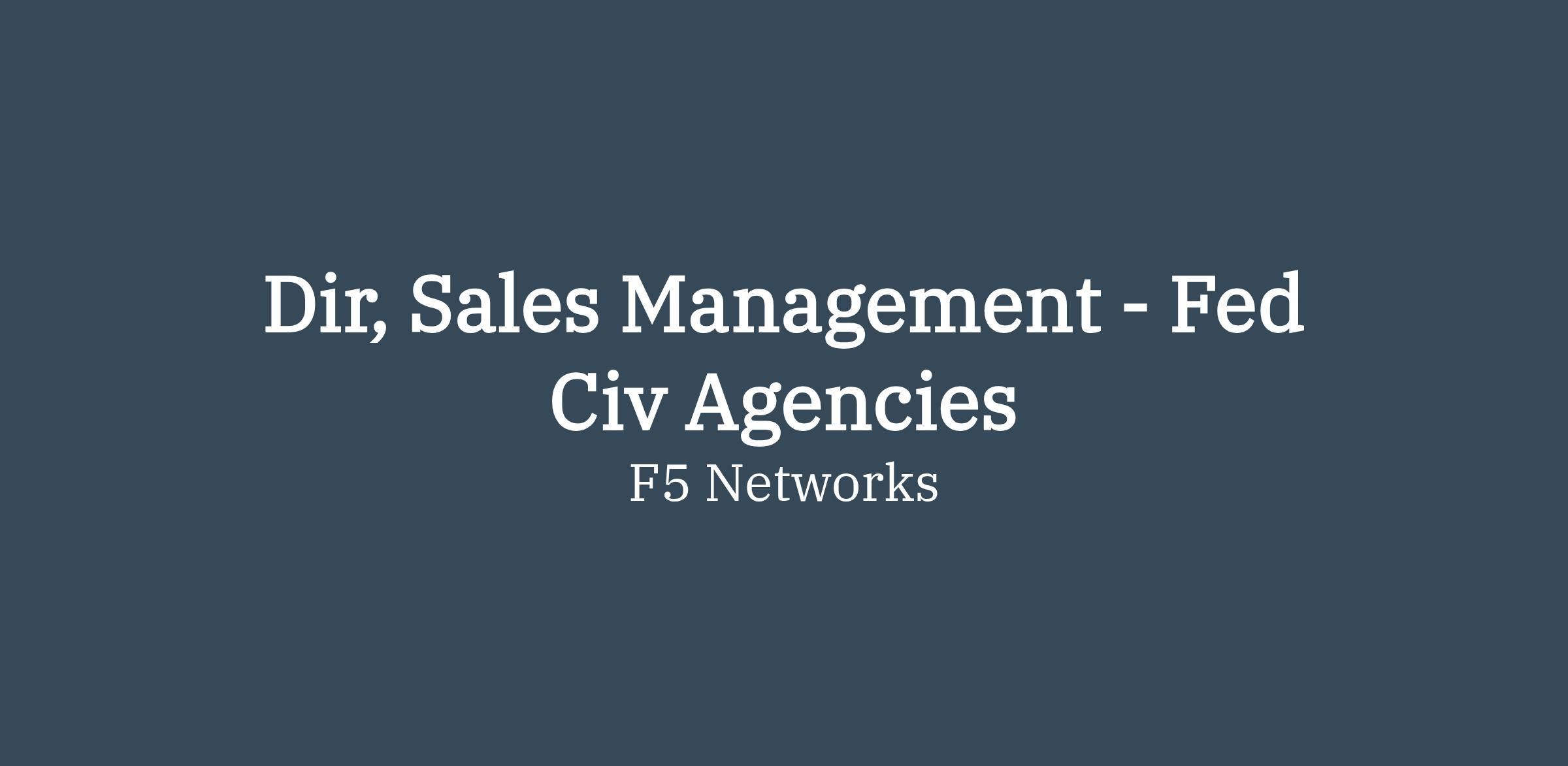 Position Summary: The Manager District Sales oversees sales directly to end-users of the f5’s products or services for the Federal Civilian Agencies. Manages a team of Account Managers. Develops territory plans and participates in strategic and tactical planning. Broad responsibility and significant operational latitude.