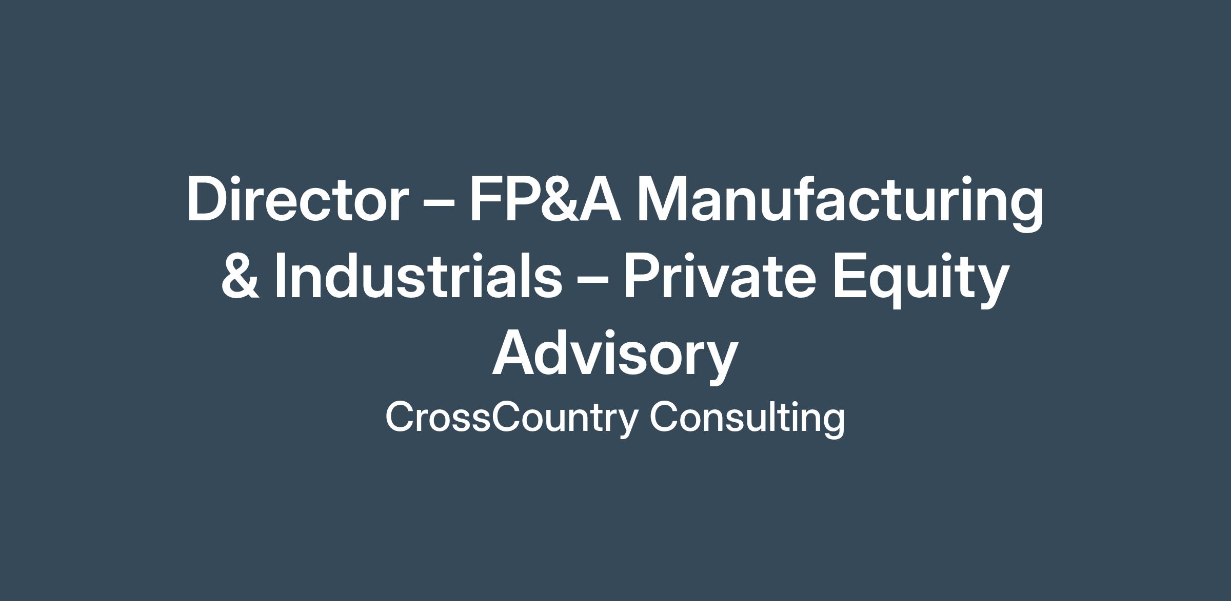 Director – FP&A Manufacturing & Industrials – Private Equity Advisory