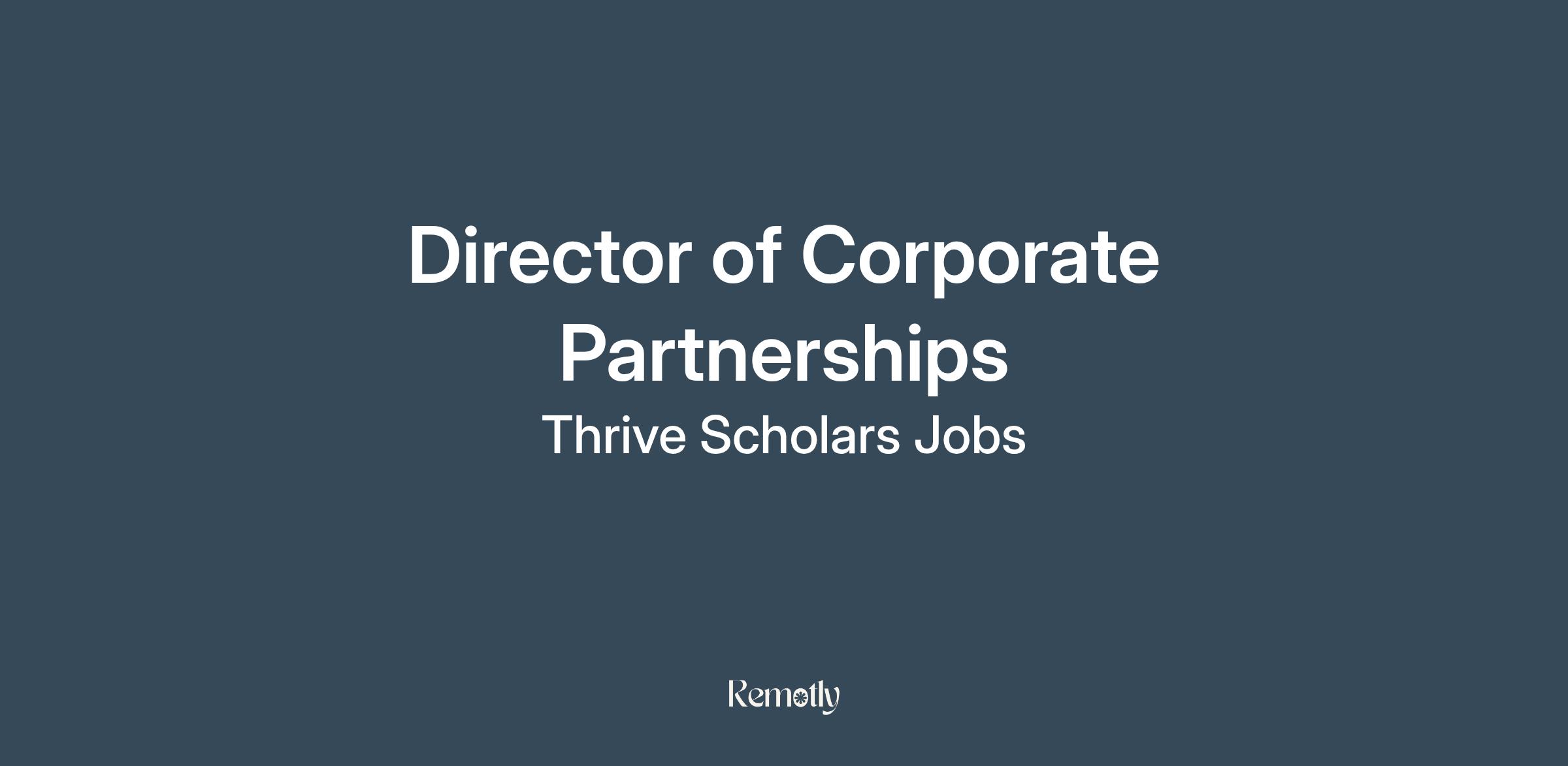 As our Director of Corporate Partnerships, you will play a critical role in helping us grow our partnerships with corporations in Los Angeles, New York, and across the country, effectively meeting the needs of our Scholars and those of our partners through mutually beneficial relationships. At Thrive Scholars, we see these partners as key to our ability to deliver on our mission and ensure that our Scholars can successfully enter and grow within competitive careers. Simultaneously, partners value their relationship with Thrive Scholars, as they recognize our organization's role in preparing highly talented, under-resourced students to succeed within their companies and industries. In this role, you will be able to build and leverage corporate partnerships, unlocking key career opportunities for our Scholars and supporting partners in investing in a diverse pipeline of future industry leaders.