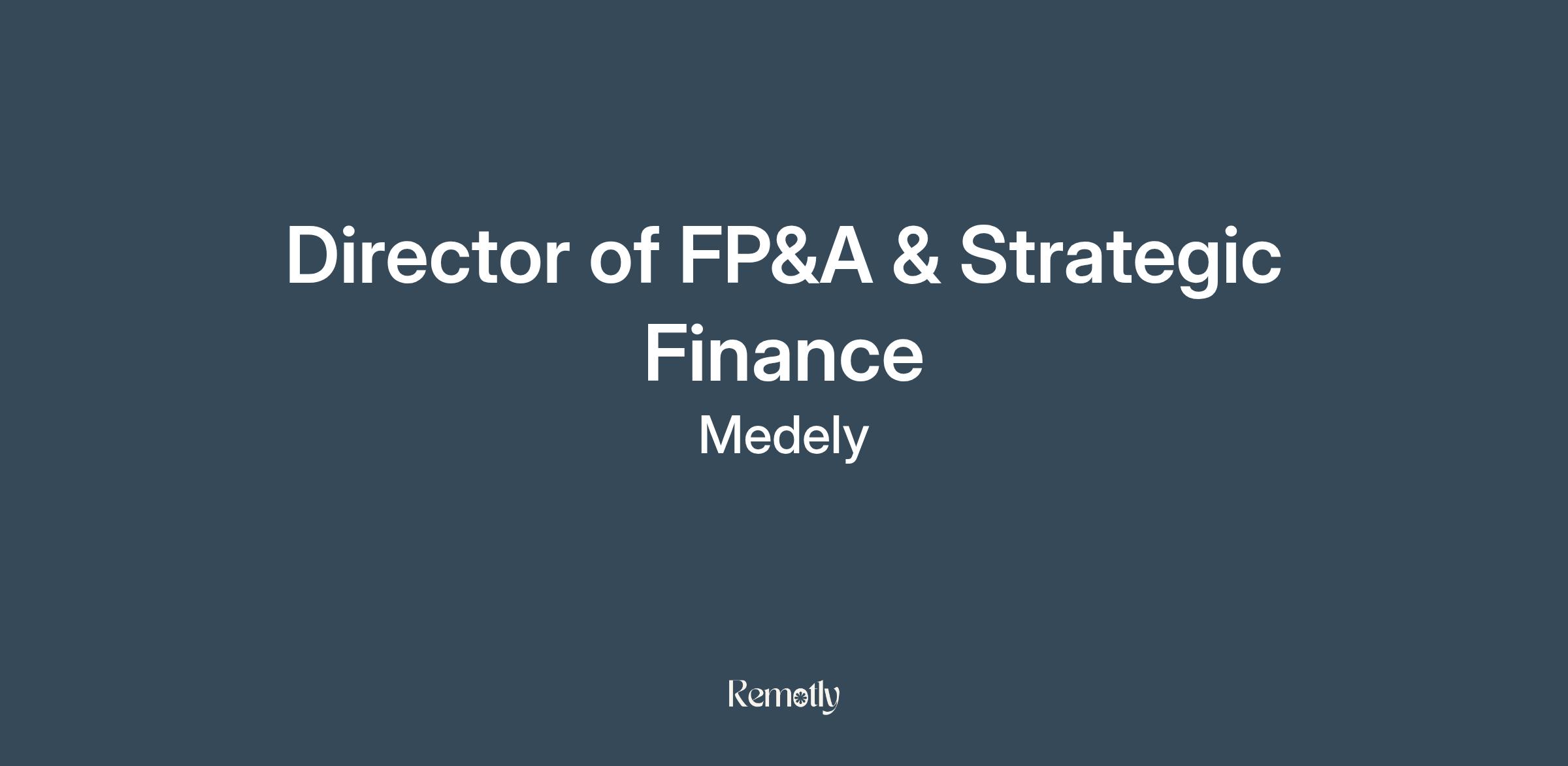 Medely is seeking a Director of FP&A & Strategic Finance to play a pivotal role in shaping our company’s future. As a key member of the Finance leadership team, you’ll partner closely with the CFO and executive leaders to guide long-range planning, pricing, and market expansion. This is a high-visibility opportunity to combine strategic insight with hands-on execution, all while leading and developing a best-in-class FP&A and Strategic Finance team.