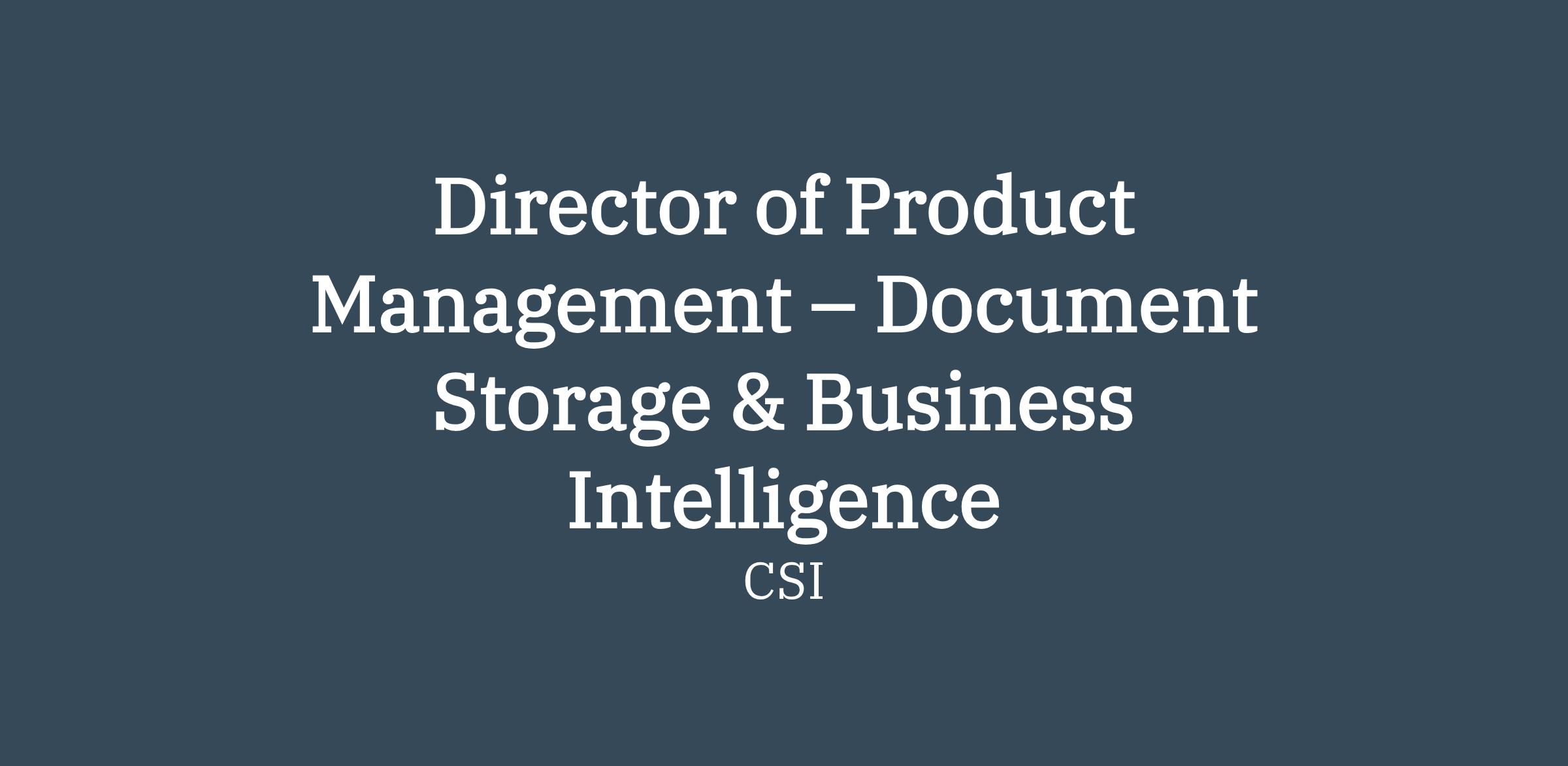 At CSI, we’re building products that power financial institutions and help our customers operate smarter, safer, and more efficiently. We’re looking for a Director of Product Management to lead the strategy, execution, and evolution of our Document Storage and Business Intelligence product portfolio. In this highly visible player‑coach role, you’ll define product vision, drive measurable business outcomes, and lead a talented team of product managers—while remaining hands‑on with at least one product. This is an opportunity to influence direction, accelerate growth, and make a real impact across CSI and our customer community.