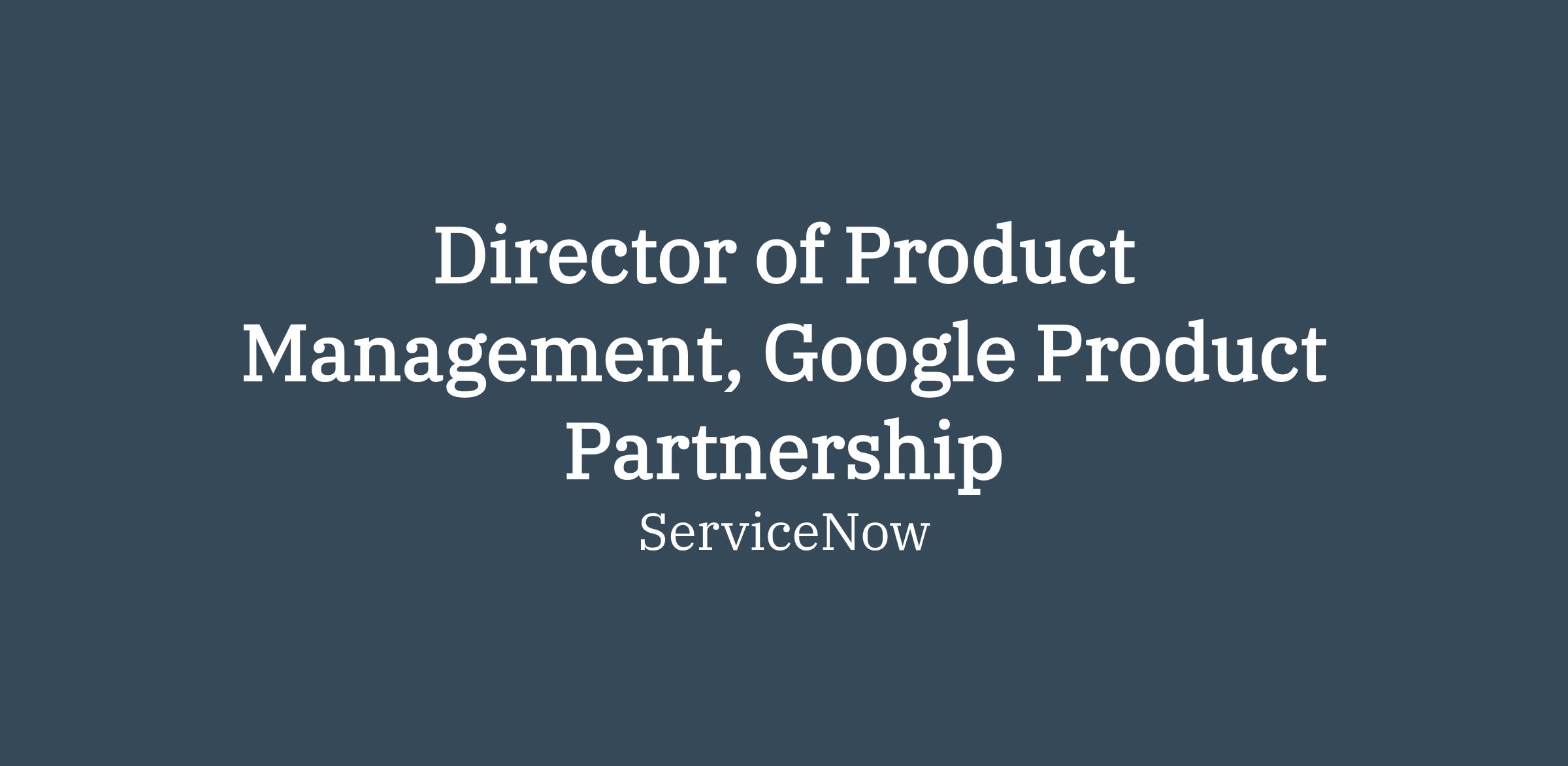 ServiceNow is seeking a seasoned product leader to drive product strategy and execution for our Google ecosystem partnerships.