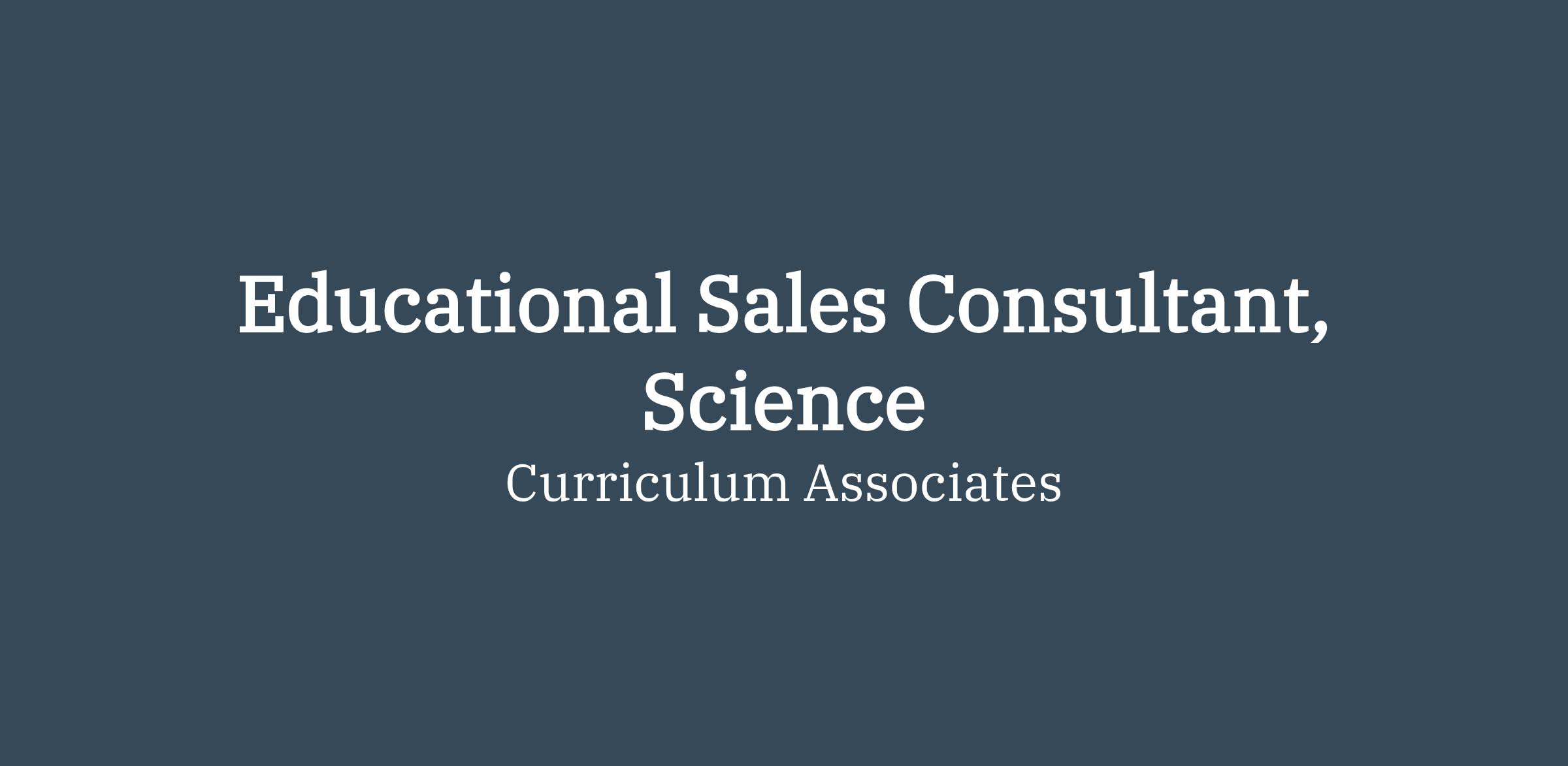 The Educational Sales Consultant (ESC), Science, is a client-facing role and is responsible for all outside Science sales in their assigned territory. The ESC Science builds interdependent relationships with district-level school administrators to promote digital and print-based products and services within the Curriculum Associates Stile Science portfolio. The ESC Science is a science product expert focused on driving and supporting teaching and learning innovation, and partnering with institutions to meet the educational outcomes of access, achievement and affordability to make classrooms a better place for all children.