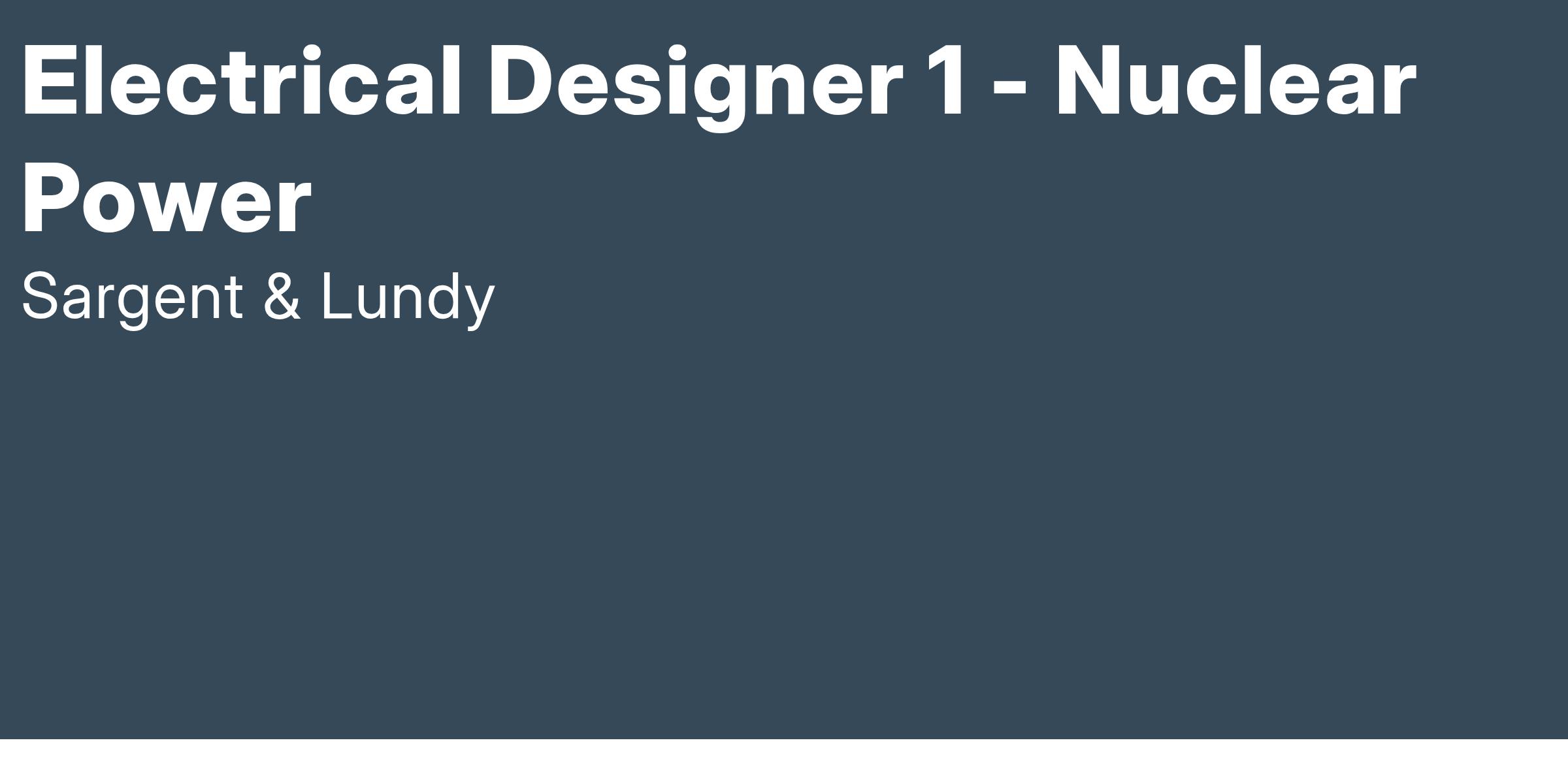 Join Sargent & Lundy's Nuclear Power Group and be part of a team driving the future of clean, carbon-free energy. Since 1954, we’ve been a trusted leader in nuclear engineering, design, and licensing, with expertise spanning small modular reactors (SMRs), advanced reactor technology (ART), and first-of-a-kind commercial reactor restart projects. Our work supports life extensions and digital modernization of existing nuclear plants, coal-to-nuclear conversion initiatives with the Department of State, and international nuclear new-build projects. With a commitment to safety, innovation, and sustainability, we provide cutting-edge solutions that power communities worldwide while reducing emissions. Shape the future of global energy with us!