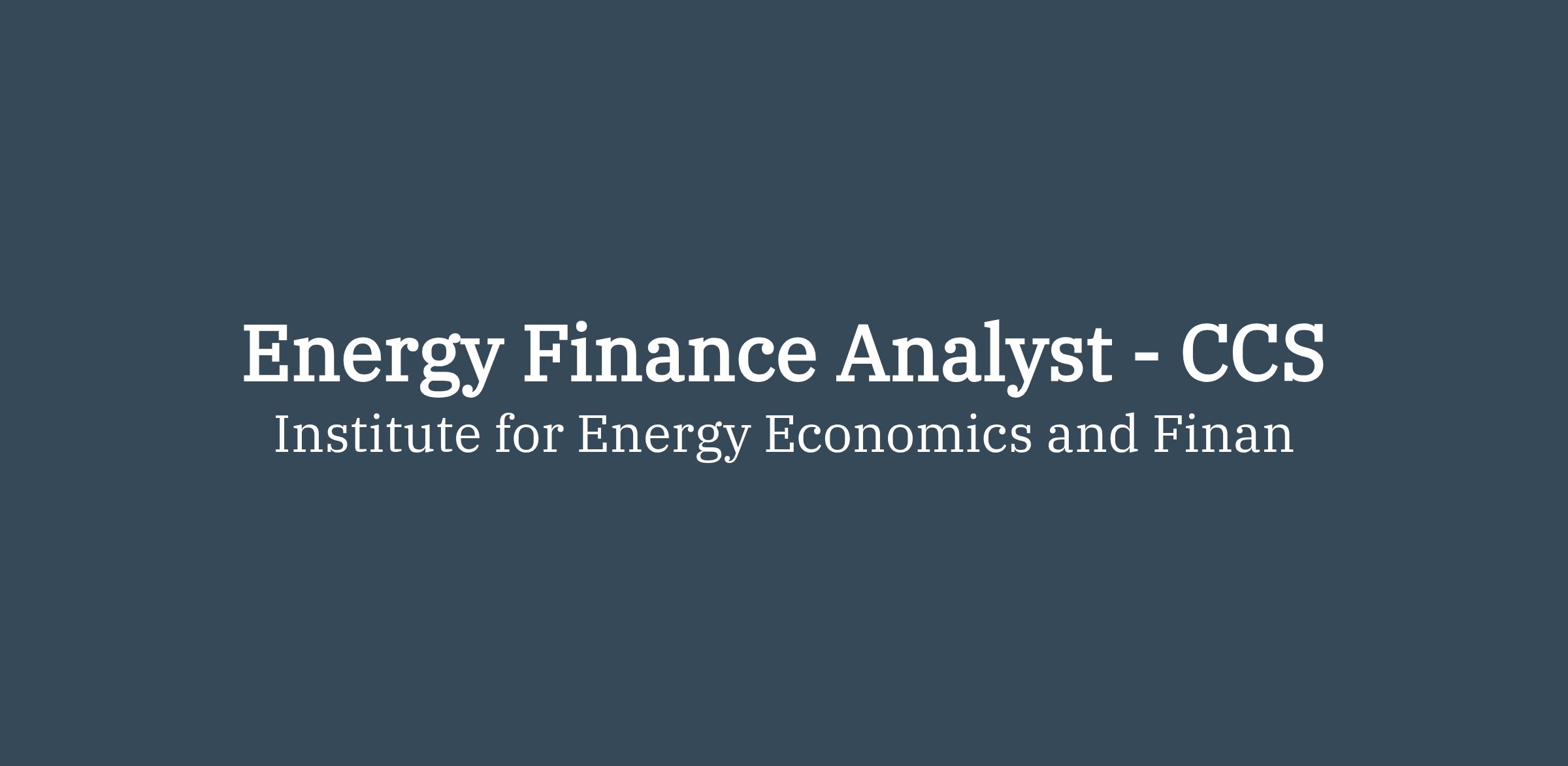 Energy Finance Analyst - CCS (Australia – Remote)