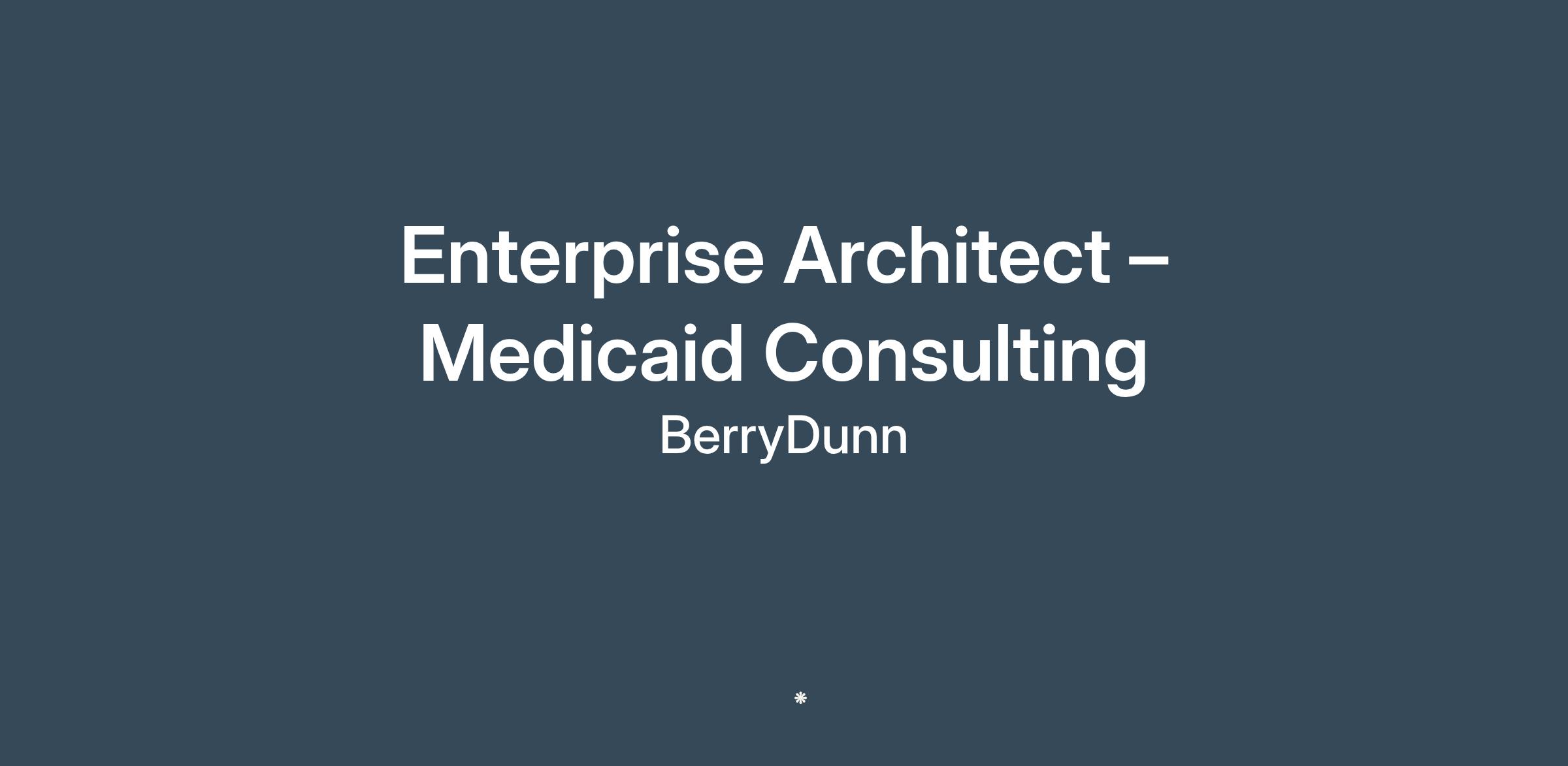BerryDunn is seeking an experienced Enterprise Architect to join our Medicaid Practice Group. This role will focus on providing expert guidance and professional consulting services to State Health and Human Services (HHS) agencies engaged in Medicaid Enterprise System (MES) modernization efforts. The Enterprise Architect will help clients define and execute their vision through the development of roadmaps, enterprise architecture frameworks, and technology strategies.