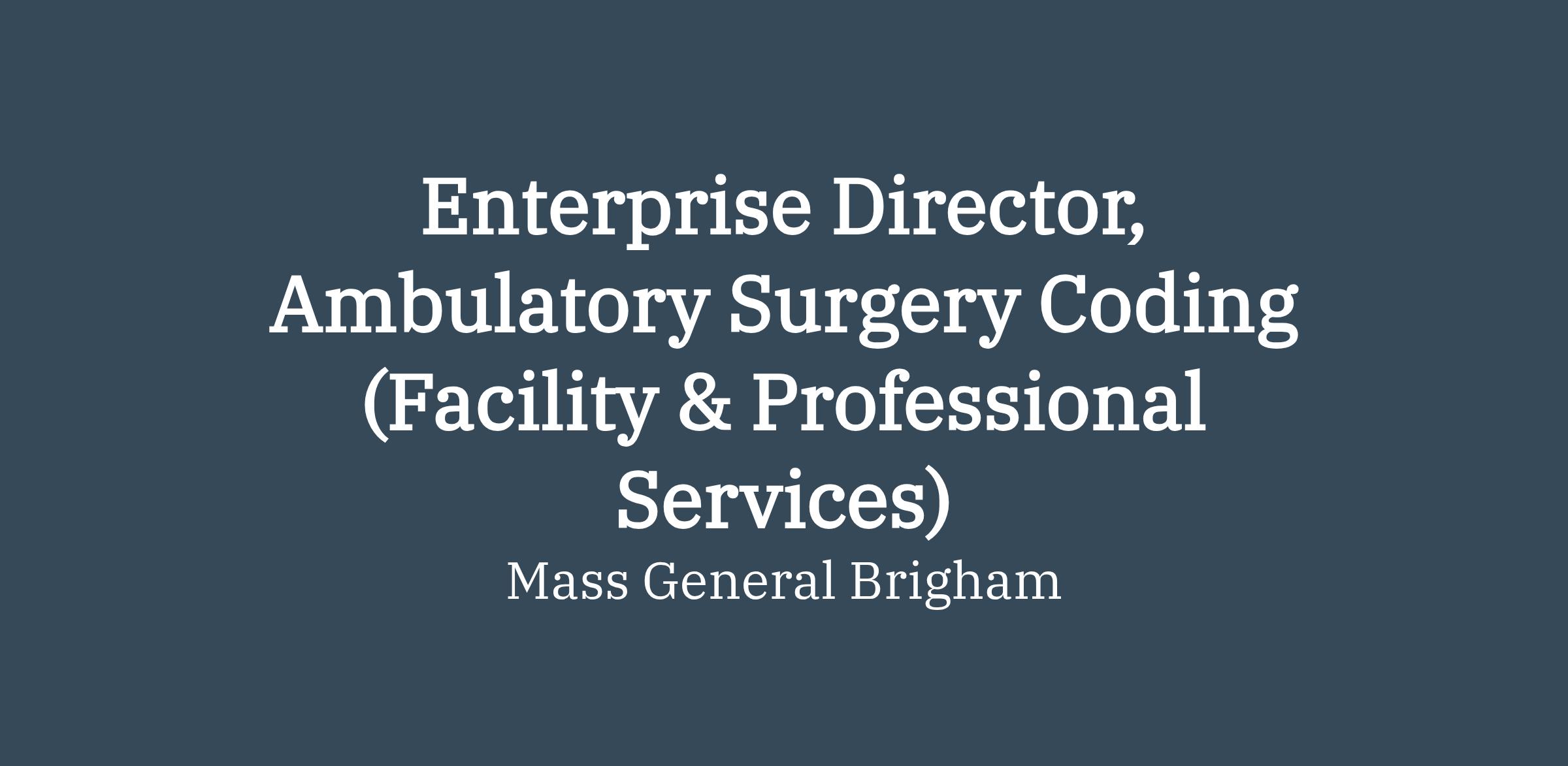 MGB is a leader in delivering exceptional outpatient surgical care. We are committed to clinical excellence, operational efficiency, and compliance integrity. We are seeking a highly skilled and visionary Director of Ambulatory Surgery Coding to lead our coding operations for both facility and professional services.