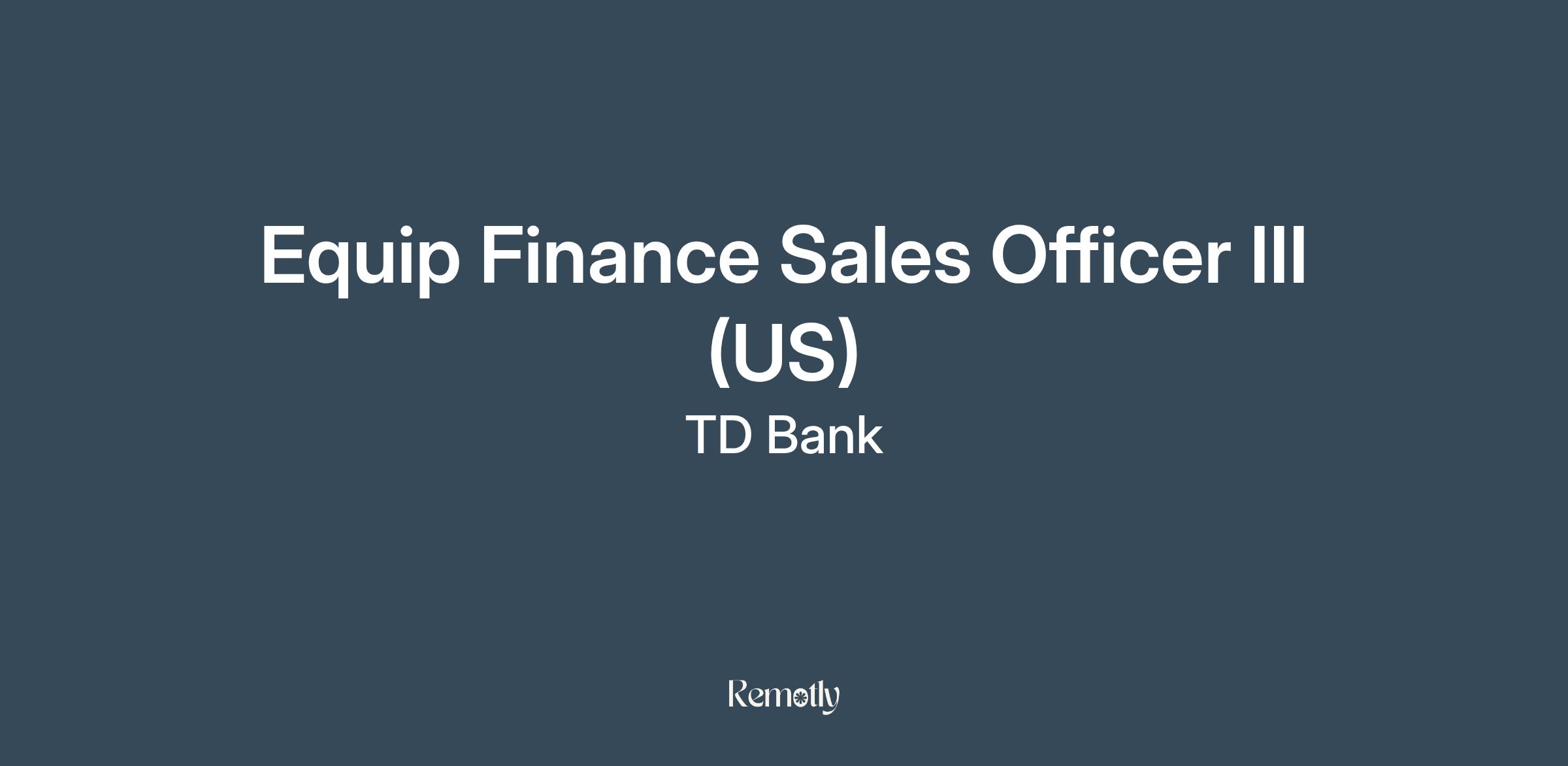 The Equipment Finance Sales Officer III is responsible for creating and executing a marketing plan to achieve a specific target volume objective within one of TD Bank's Markets. This job develops new equipment finance business via internal referral sources as well as external business contacts in accordance with TDEF procedures and regulatory guidelines. The Equipment Finance Sales Officer III achieves a determined percentage of sales volume from direct prospecting, calling on prospects of TD Bank, maintaining an internal referral network, as well as working from a prospect list of specific SIC codes. This job also gathers prospect financial and general business information, provides support and assistance to credit decision process and communicates with prospects to close sales.