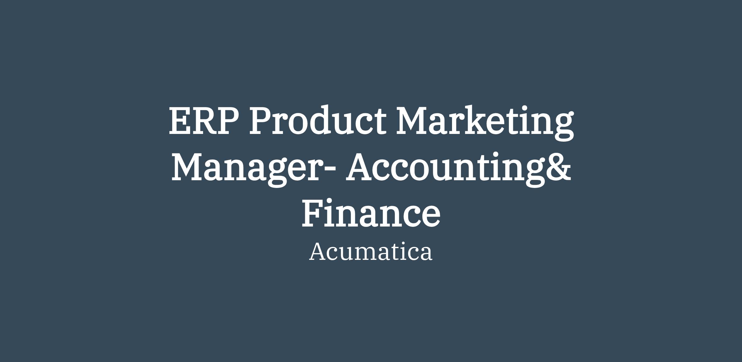 Acumatica's Product Marketing team is looking for a strategic Product Marketer with proven experience in ERP, with an emphasis in financial management and business operations. You'll help us deliver compelling, differentiated messages, position us effectively in the market, and hit it out of the park with our business goals. This role is a full-time opportunity reporting directly to the Director of Product Marketing.