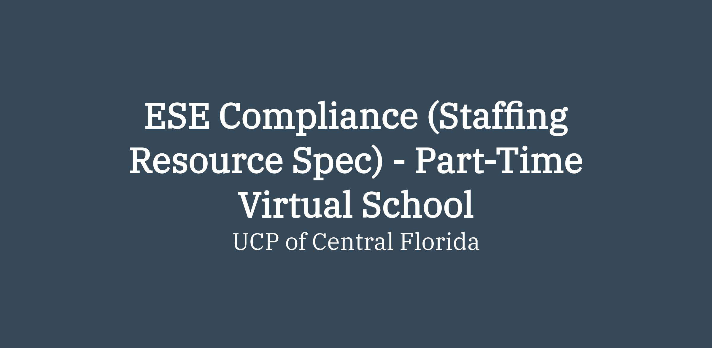 The part time Virtual ESE Staffing Resource Specialist, under the direction of the Principal and ESE Compliance Coordinator, facilitates the IEP process and protocols as well as supports the delivery of exceptional student programs within UCP Virtual School Immersive Learning Academy. This position also provides technical assistance to ensure compliance with all appropriate ESE laws for school-based teams.