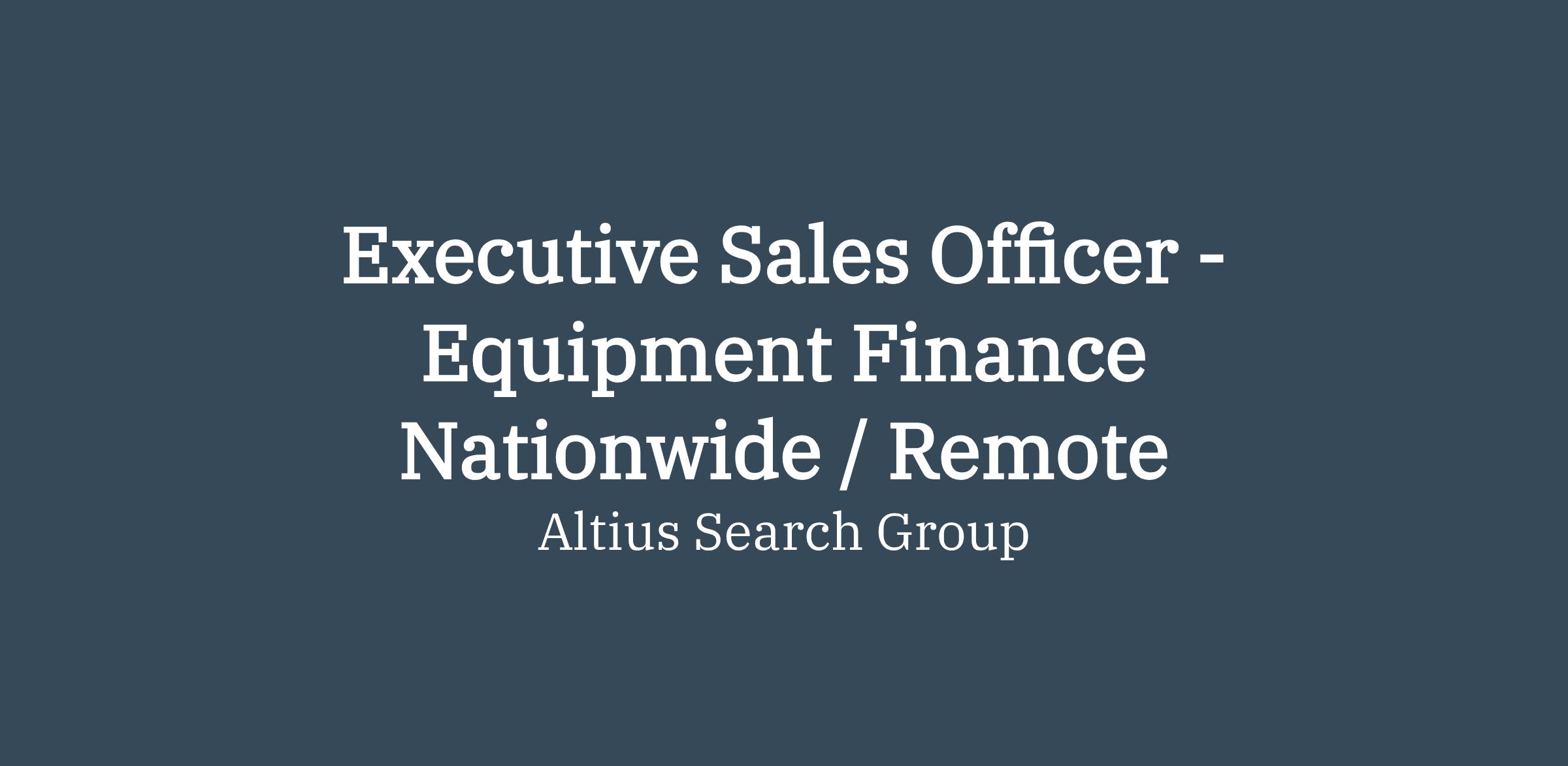 Altius Search Group is recruiting for a client seeking an experienced Executive Sales Officer to join its Equipment Finance platform. This is a high-impact sales role for a motivated originator with a strong track record of developing new business, building client relationships, and structuring equipment finance solutions for middle market companies.