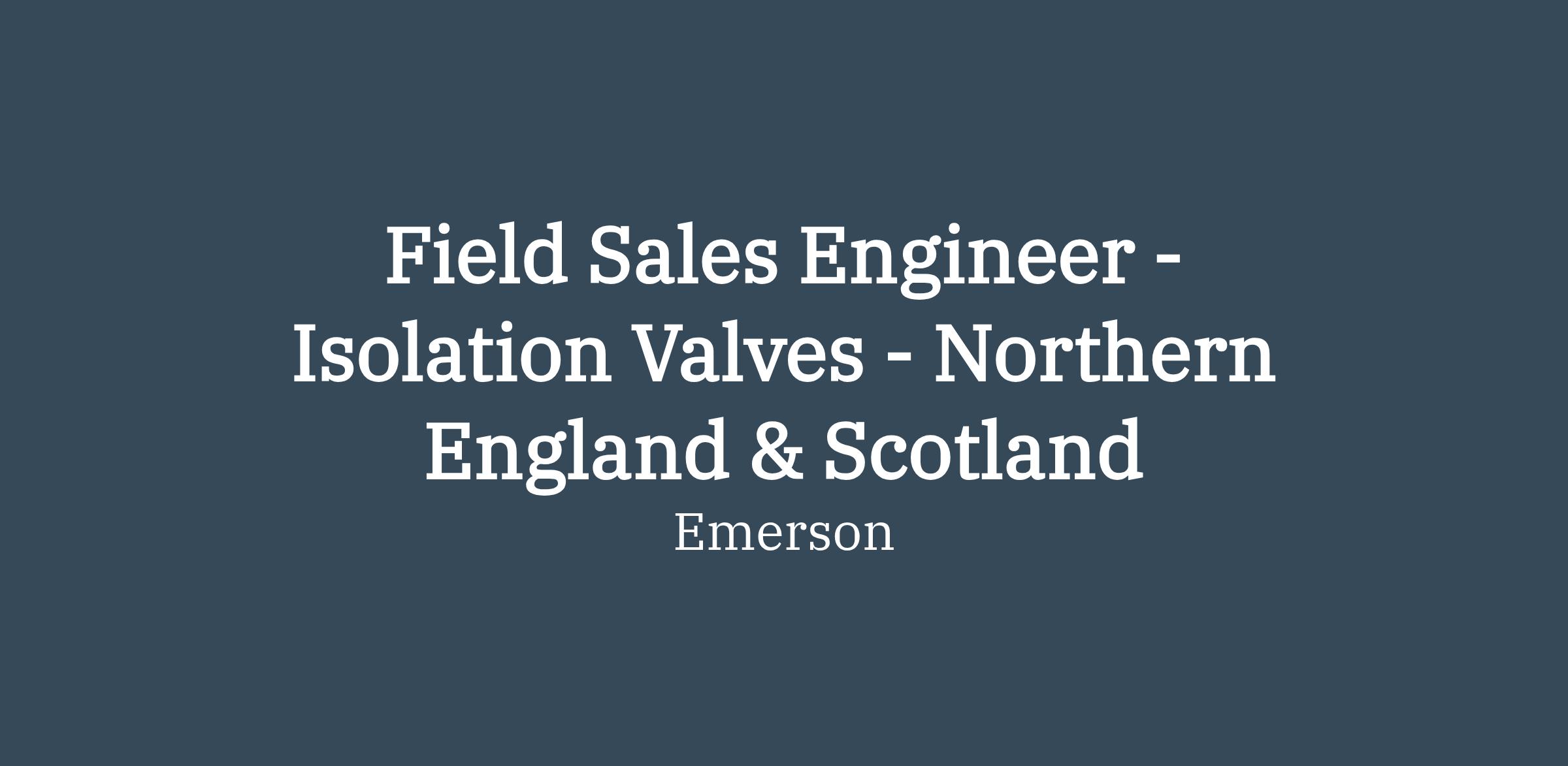- Join Emerson as a Field Sales Engineer for our Isolation Valves business and make a significant impact on increasing market share across all product lines. We're interested in speaking with experienced sales professionals who are motivated by success and have a strong customer focus.