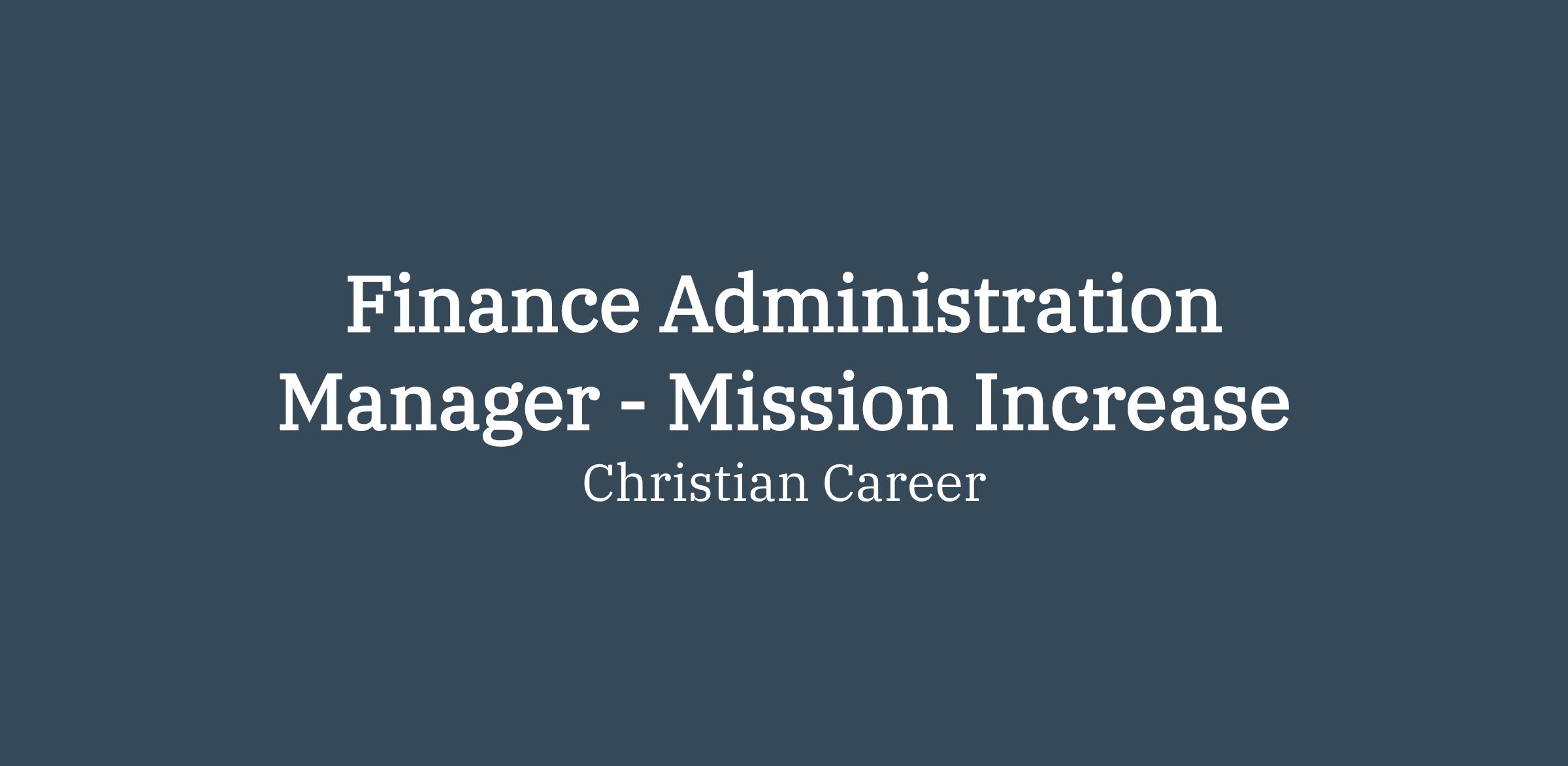 Finance Administration Manager - Mission IncreaseReports to: CFO